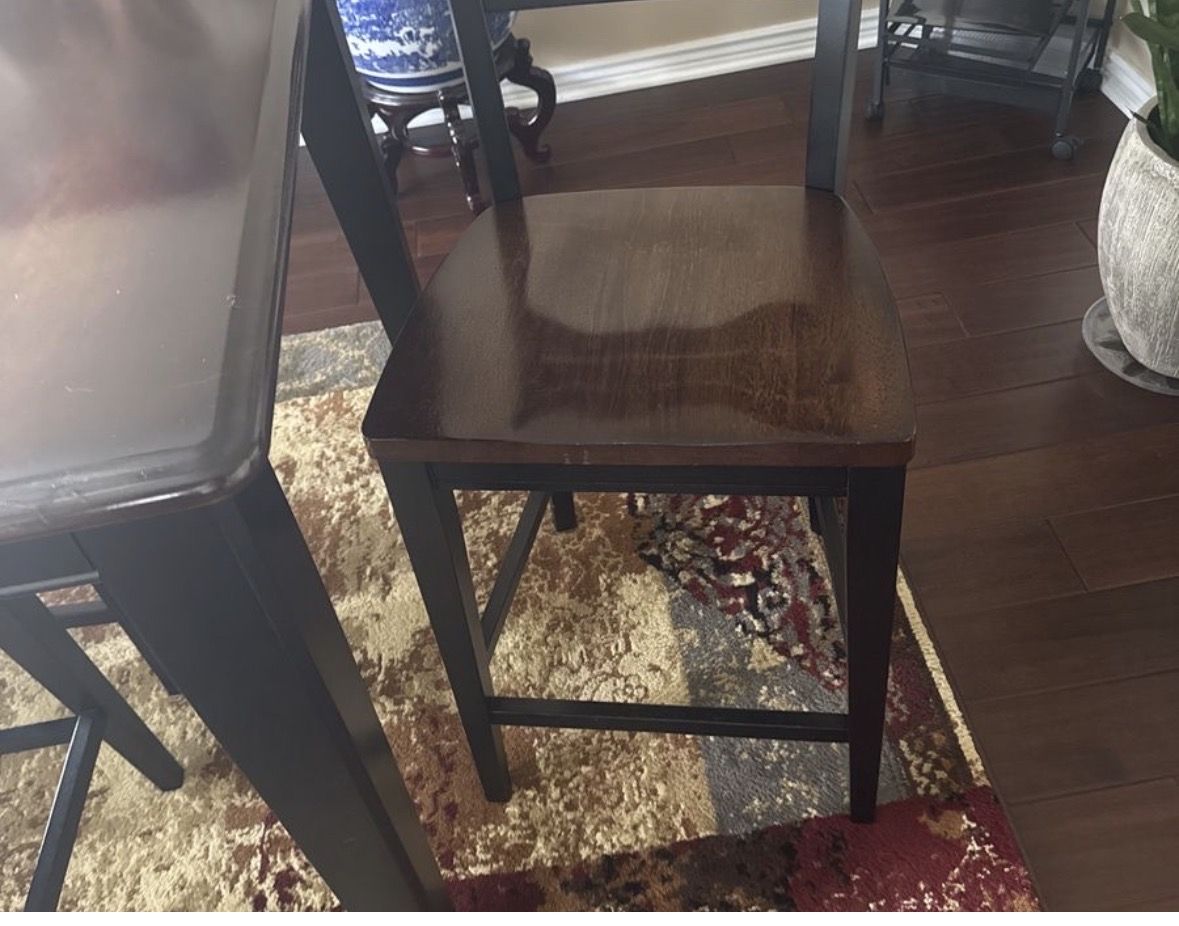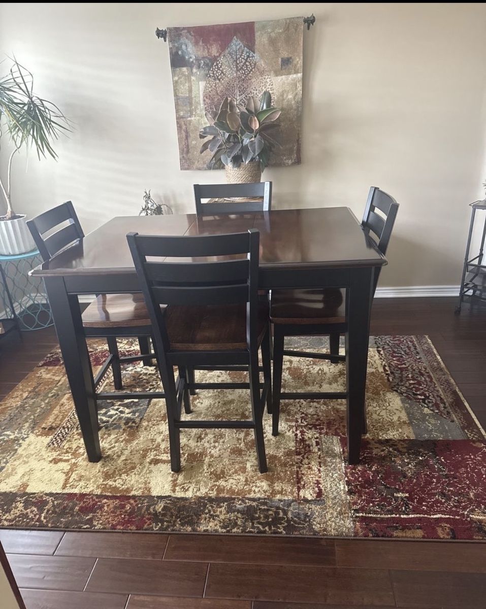 Details: • Counter-height table • Includes 1 leaf for additional seating. Without leaf it fits perfectly in smaller spaces. • Seats 4 comfortably (more with leaf) • Solid, sturdy construction • Excellent condition — no major scratches or damage