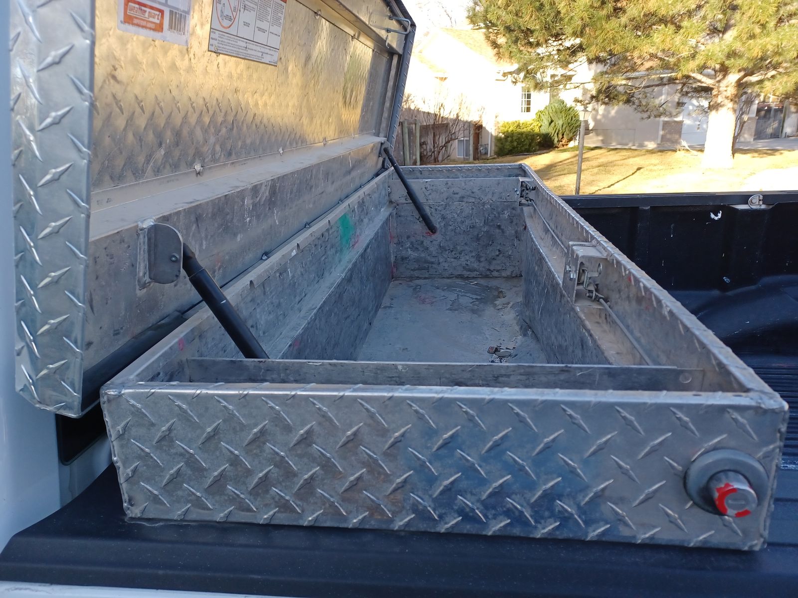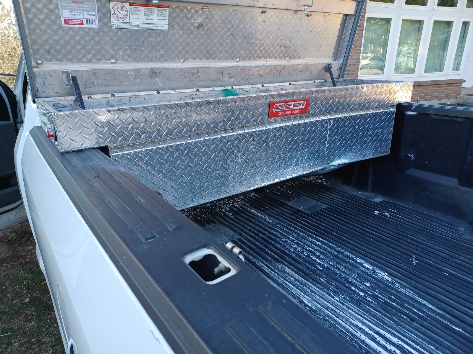 VenmoSelling a Weather Guard Defender Series Model #302105-9-01 uncoated aluminum full-size truck toolbox. This is a professional-grade saddle box known for security and weather resistance. Details: Dimensions: 71" L x 19.7" W x 17.7" H (Fits most full-size pickup trucks). Capacity: 10.7 cu ft of storage. Condition: Fully functional. It does have a dent on the front panel, but the lid closes evenly and the latches engage properly. Missing Items: Does not come with keys or mounting brackets. Replacement keys can be ordered online via the lock code, and mounting kits are available locally at shops like TOPS Equipment. Features: Heavy-duty four-piece welded aluminum construction. Dual gas struts for easy lid opening. D-shaped weather stripping to keep tools dry. Tamper-resistant push-button locks. Price: $150 OBO. Location: Sandy, UT (84092). Text Jason 385-259-4231