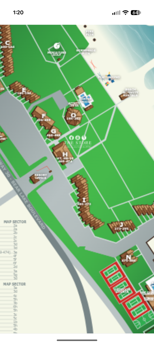 Building "G", close to pool and playground, upper loft unit that sleeps 10. Close to store and quick beach access. See map.