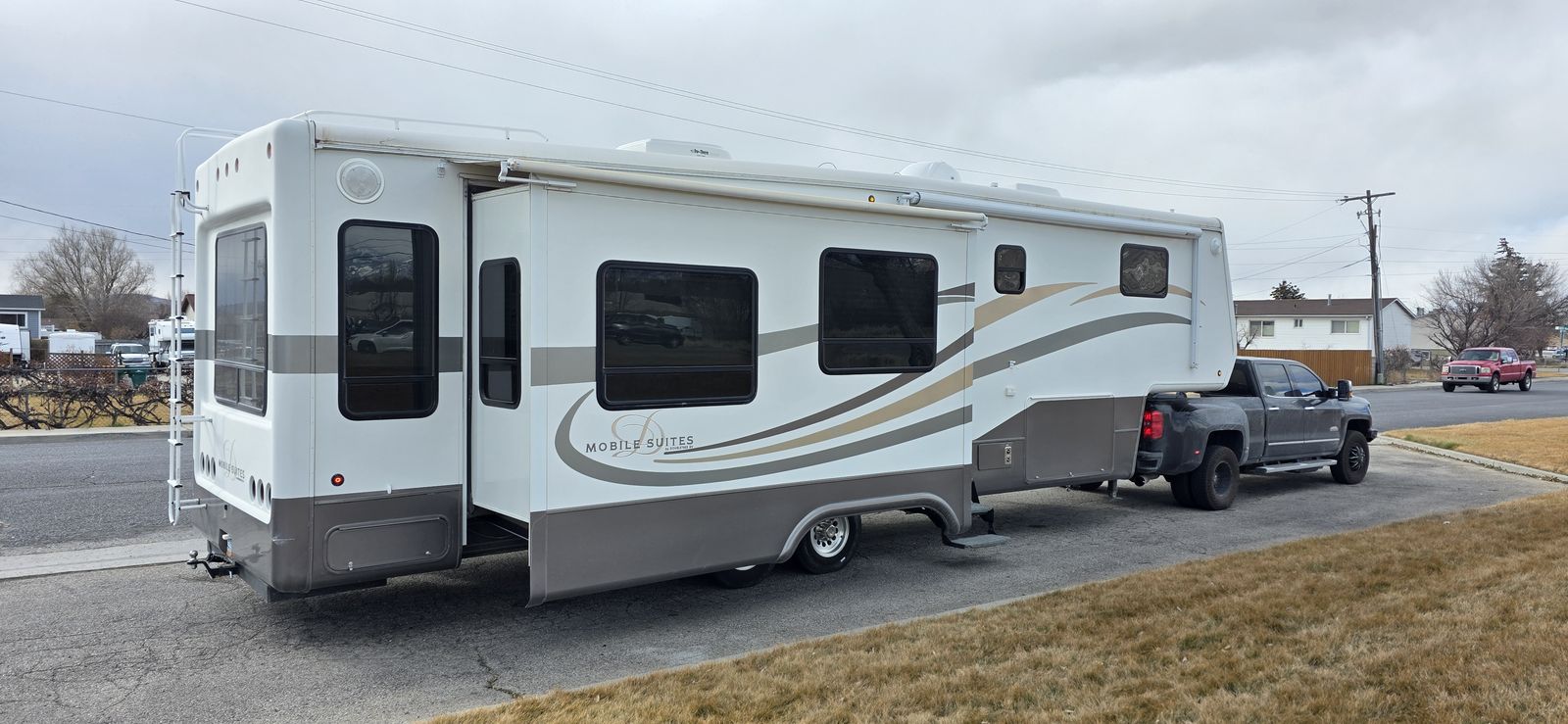 2006 Mobile Suites, Built by Doubletree RV, the Mobile Suites line was designed to compete with high-end residential coaches — heavier construction, real wood cabinetry, and true 4-season capability.