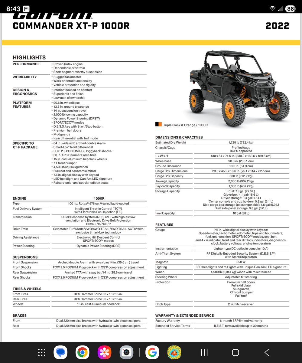 2022 Can Am Commander XT-P 1000R with Adjustable Fox Podium 2.5 QS3 Shocks!