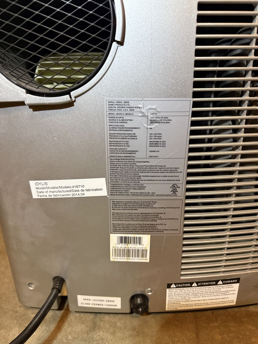 Idylis model 416710 portable AC unit in good working condition. Has barely been used. 12,000 BTU, 115V, single hose. Cools up to approximately 500 sq ft.