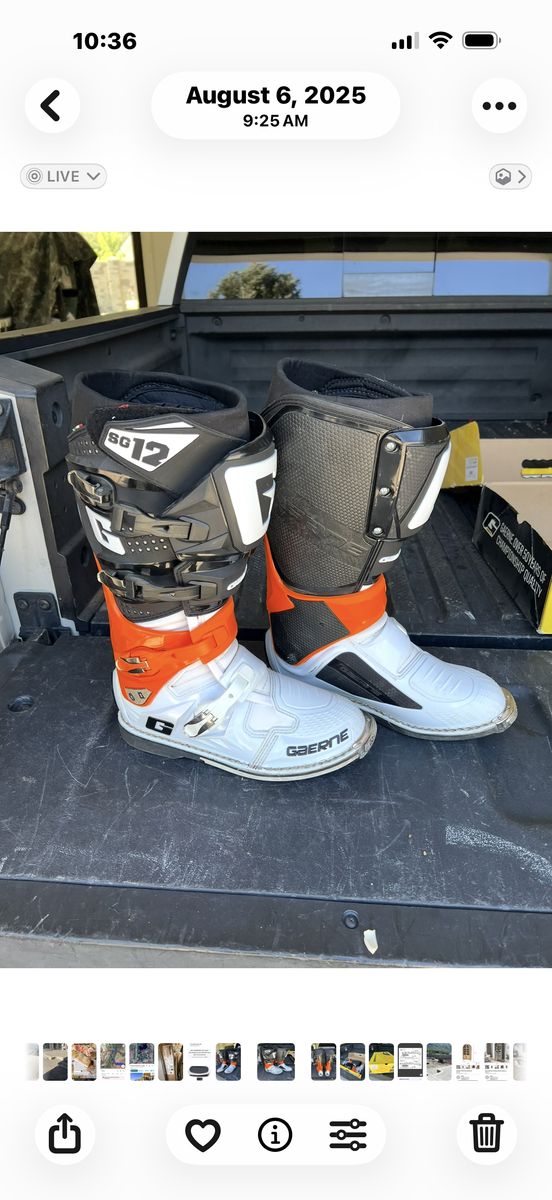 VenmoGarner SG -12 orange•black•white (Size 10). Wore once (like new)! Considered the best all around motorcycle/motorcross boot made. Cost $550 new. Will sale for $330.
