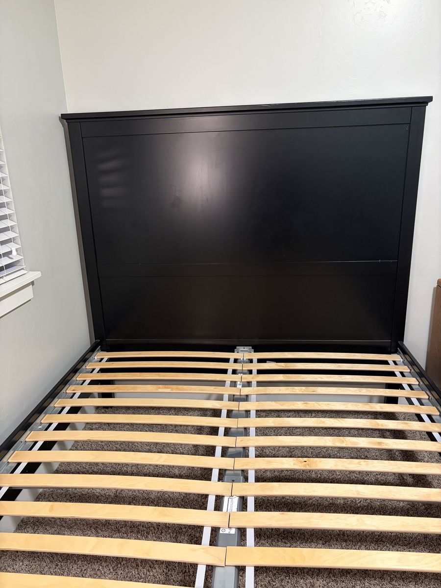 ApplePayBlack IKEA queen bed frame. Trying to sell quick.