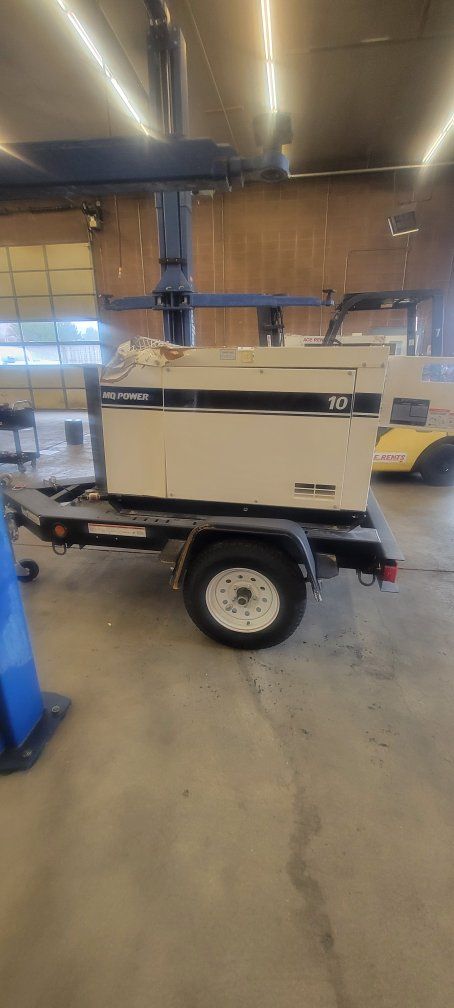 Multiquip 10kw generator with trailer mounted fuel tank. unit was involved in a car accident still runs and functions like normal has significant body damage , 943.9 hours Would make a great generator for someone that doesn't mind the visual damage