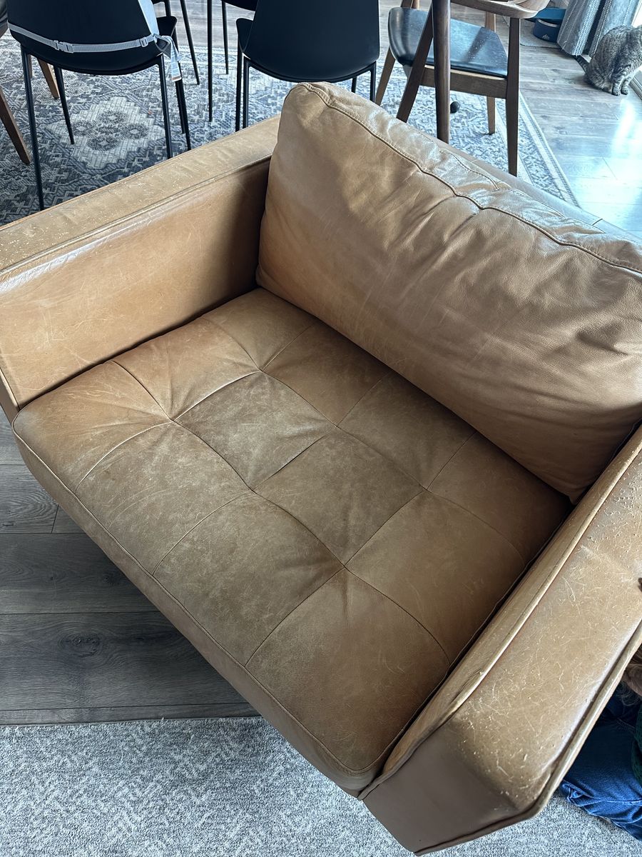 VenmoExcellent chair, and looks great. Please see pictures for cat damage. Other than the cats using this as a scratching post, there is no structural damage.