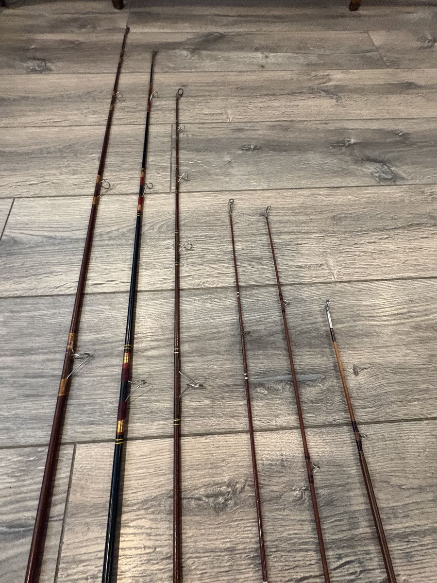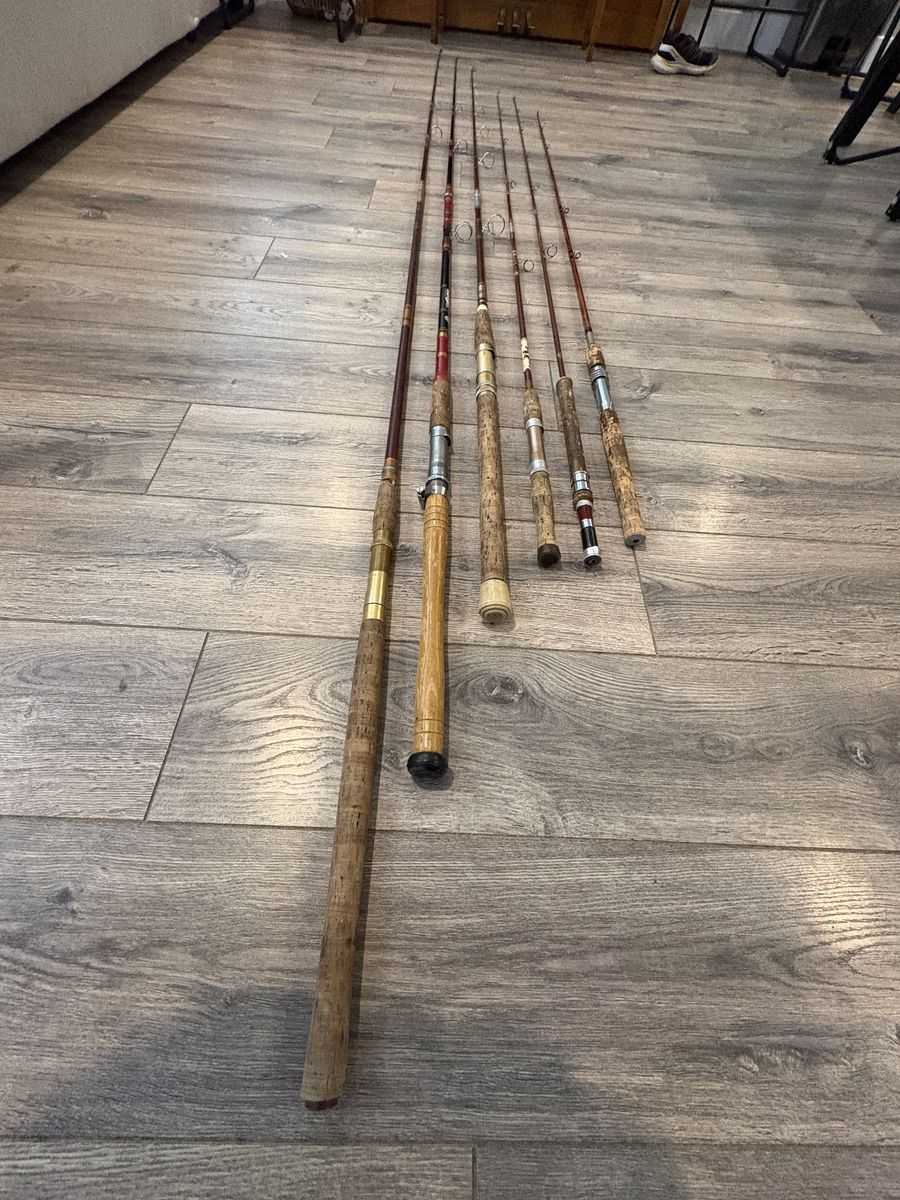 Selling a lot of 6 vintage fishing rods. Includes: