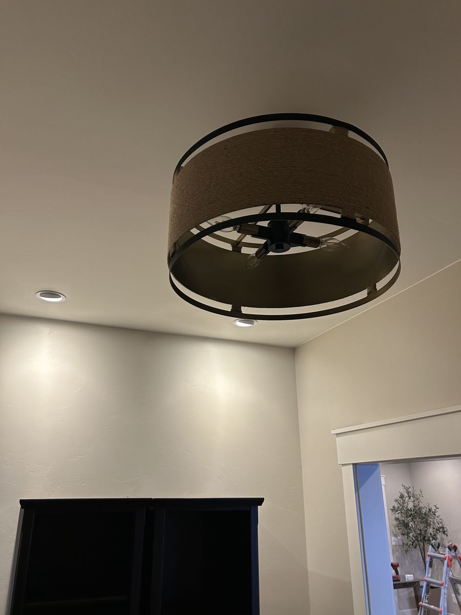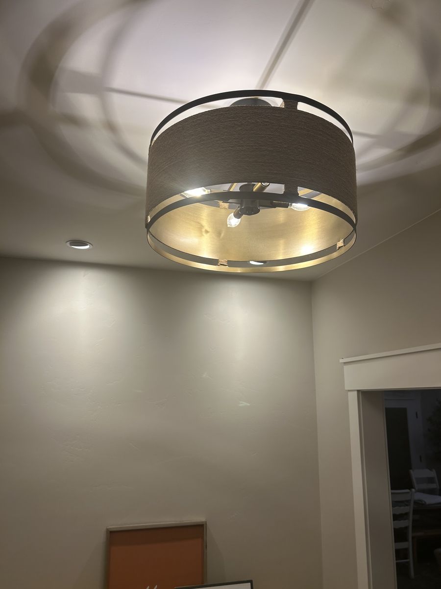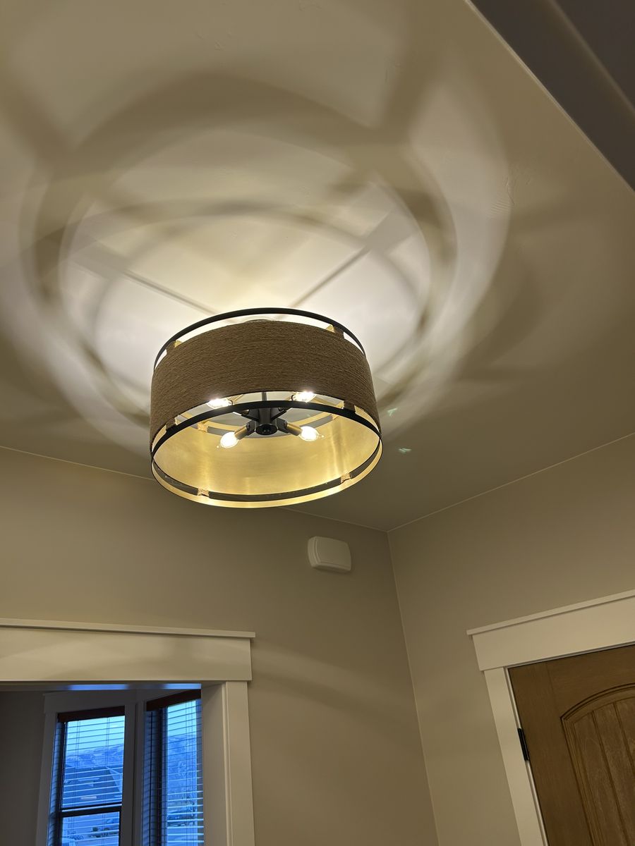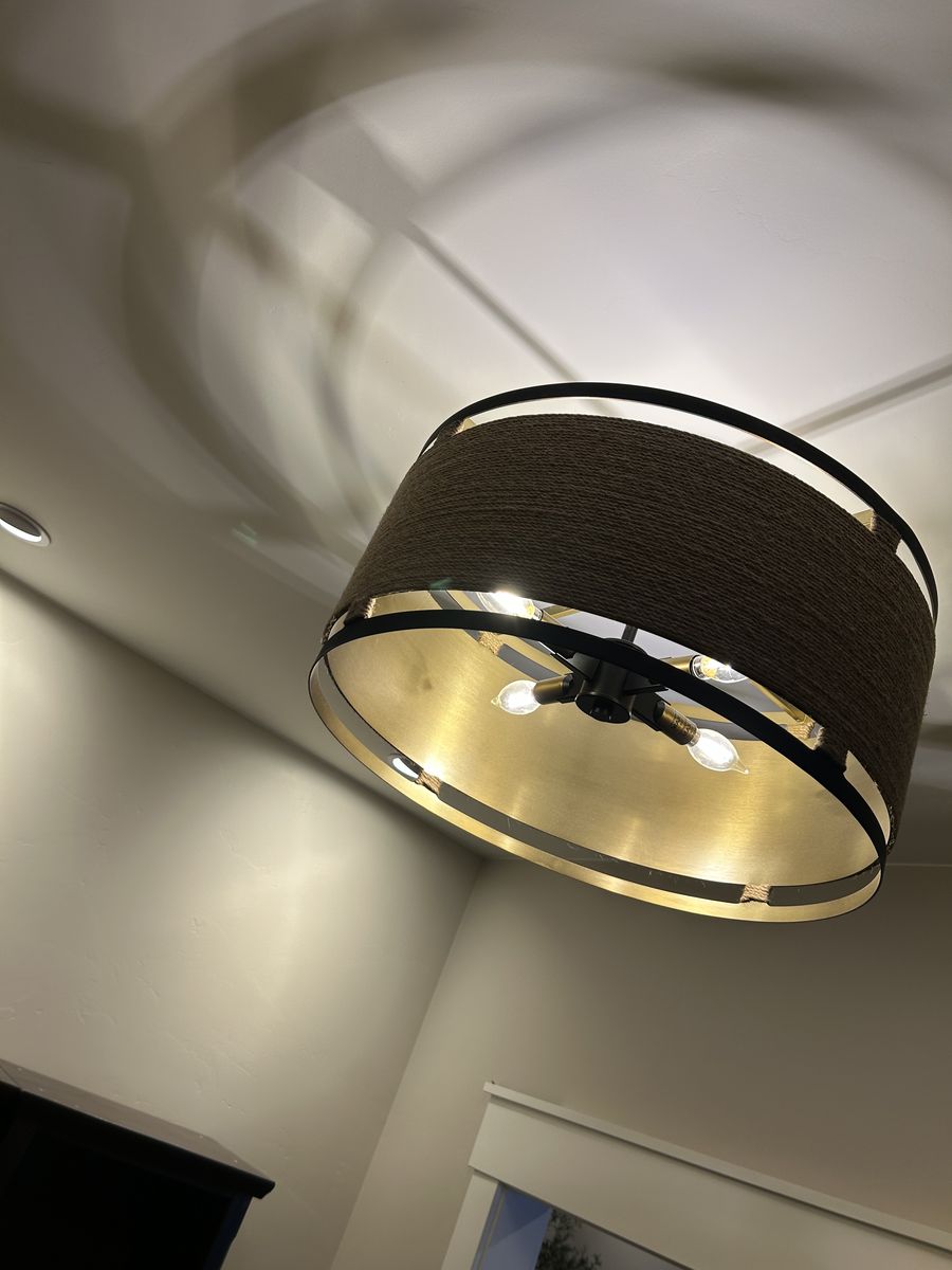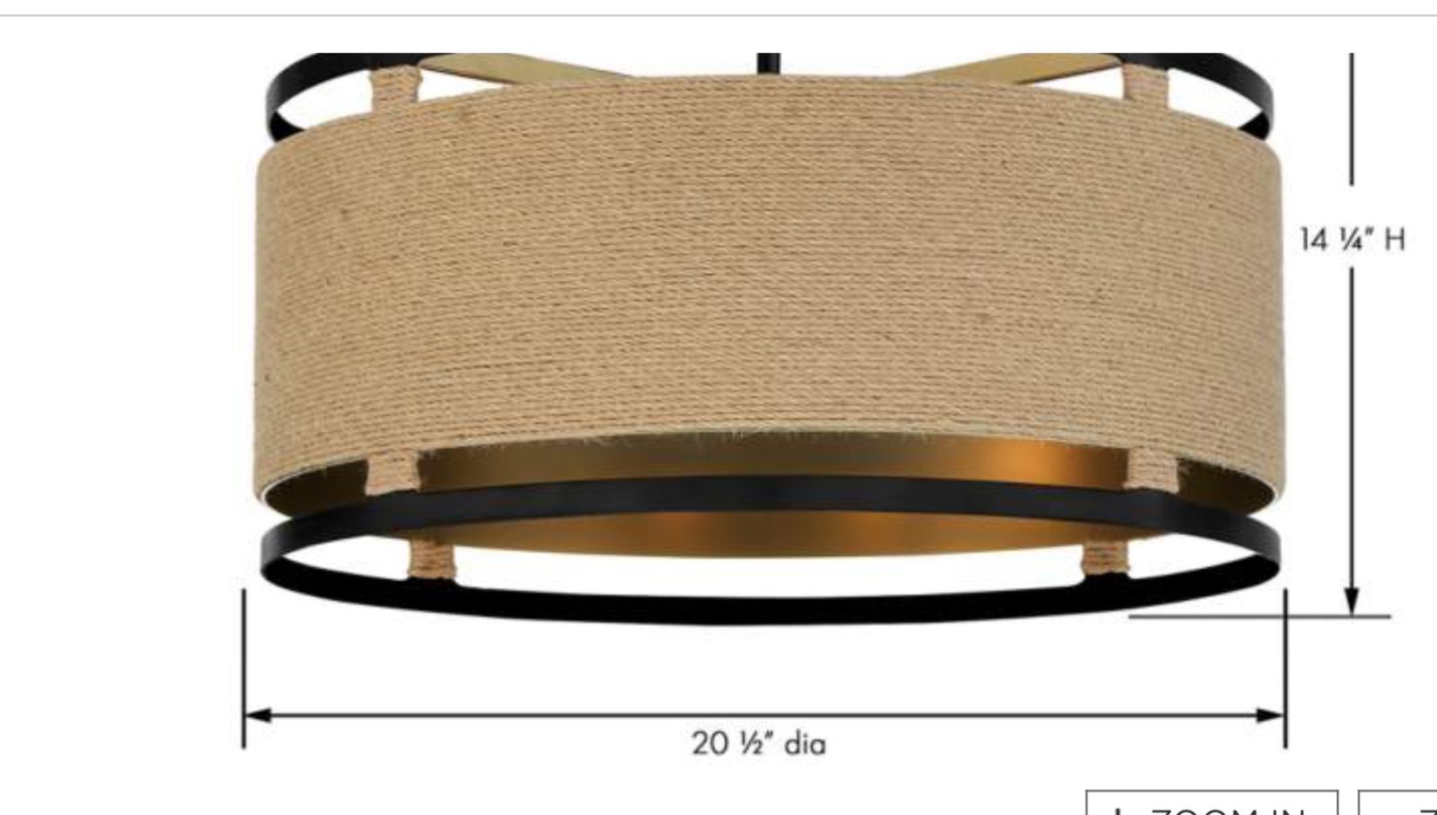20 1/2 wide x 14 1/4 high. Weighs 14.51 lbs. Uses four maximum 60 watt E12 candelabra base bulbs (not included). Windward Passage four-light damp rated semi-flushmount ceiling light, from Minka Lavery. Coastal cottage style, the perfect style for any coastal home. Natural rope drum shade. Coal finish frame. Soft brass finish accents. Steel and rope construction.