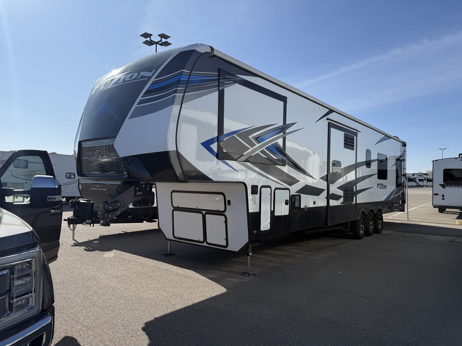 2021 Keystone Fuzion 419, 15 ft box, king size bed, 1.5 baths, 3 TV's, excellent shape