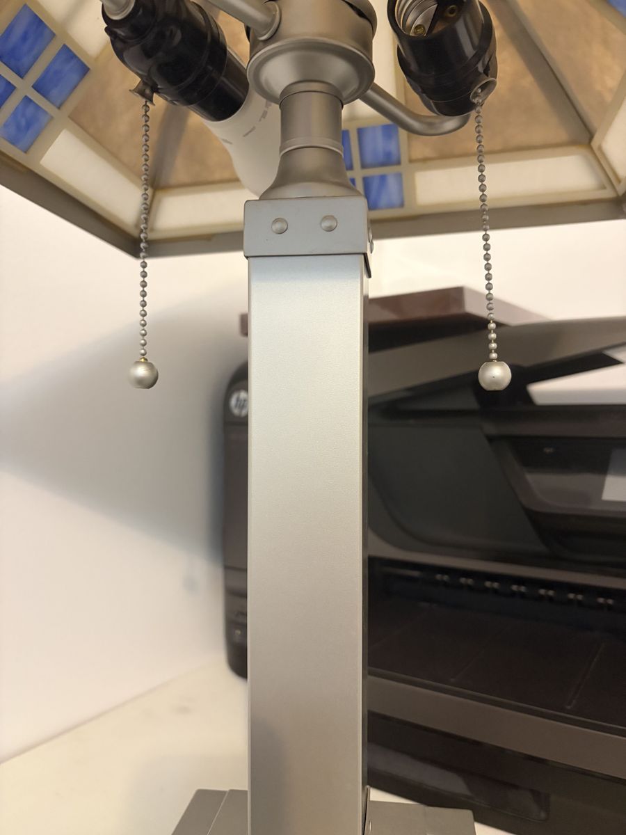 ApplePayThe base is metal, the colored area is a plastic, but looks like glass. The tops spin a little, but it's never been an issue and can probably be tightened. 21 inches tall and 13 inches wide. $30 for both. Cash only. You haul away. Text Kim if interested. 801-739-5977