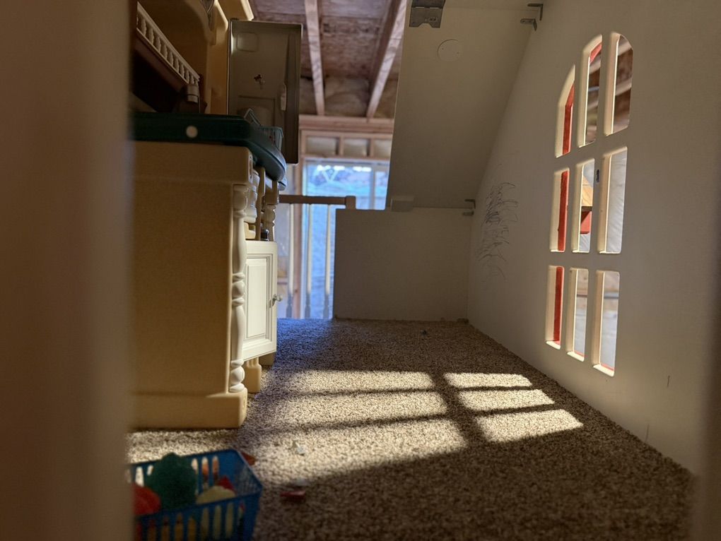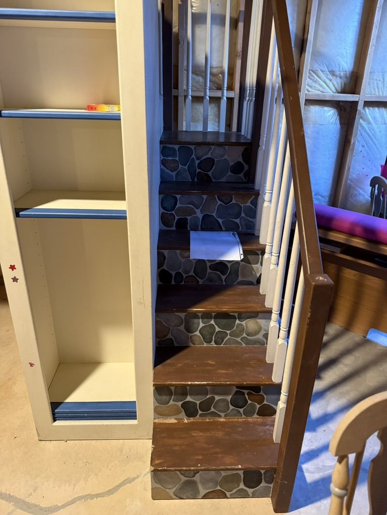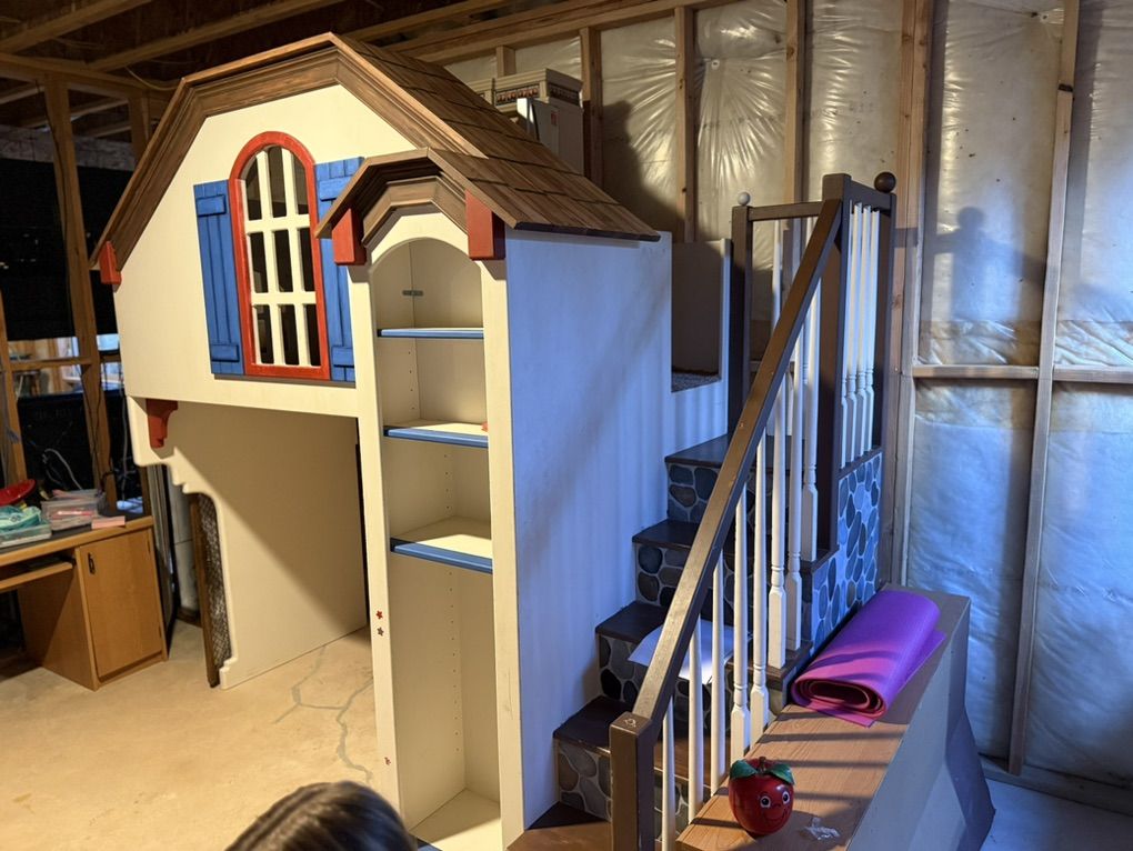 Has stairs and 4 drawer storage. Heavy duty construction. My grandkids have outgrown it.