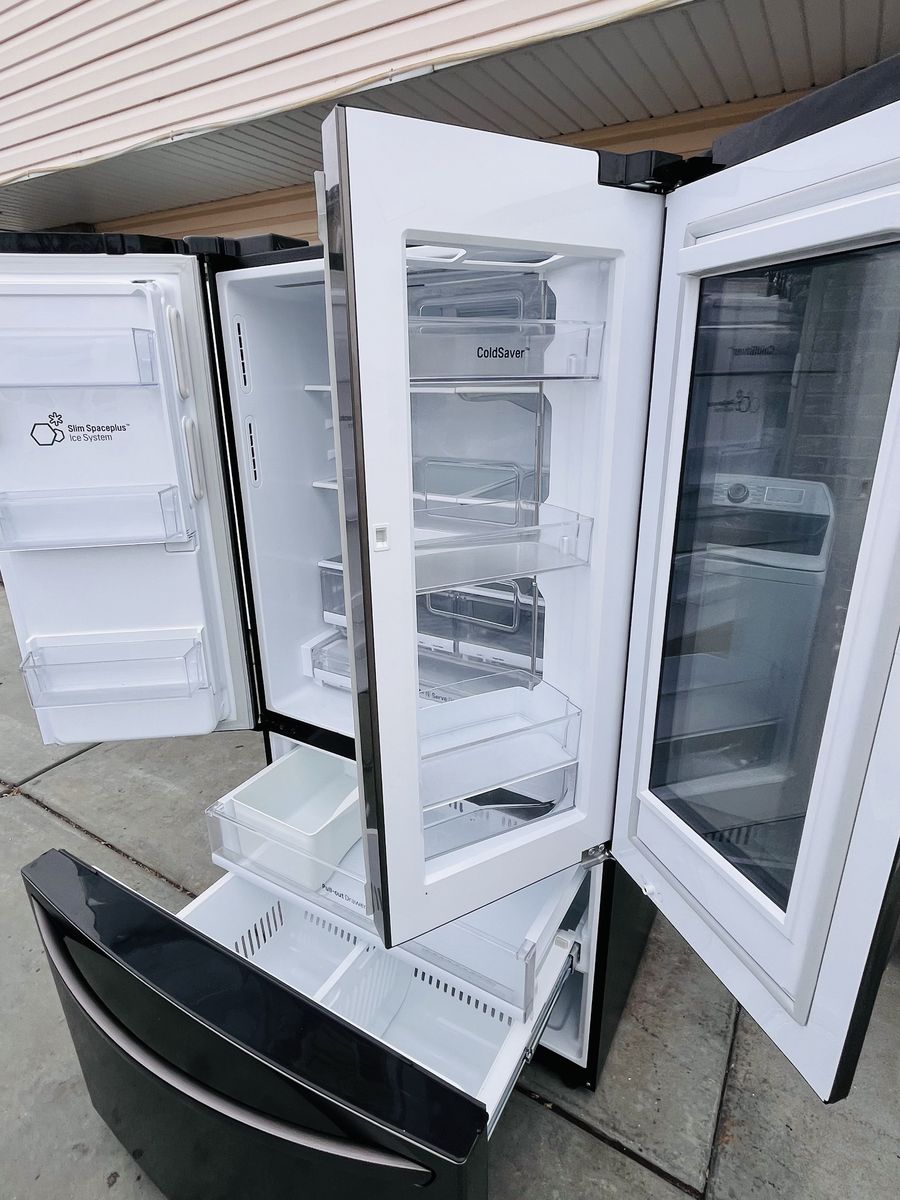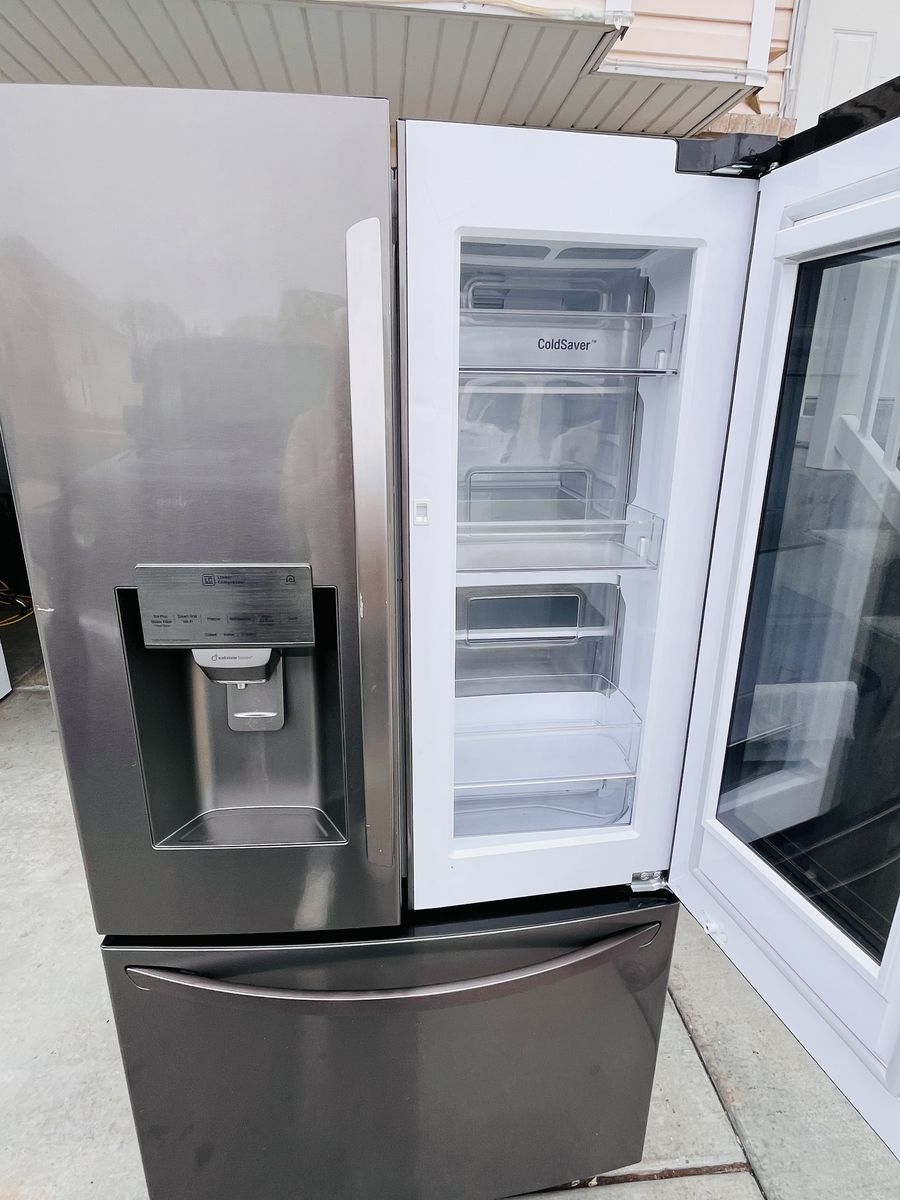 ApplePayIm selling good refrigerator LG glass door in door black stainless steel, everything works perfectly conditions, 35”3/4 inch wide and 68”3/4 inch tall, for more information please call or text Johnny delivery available.