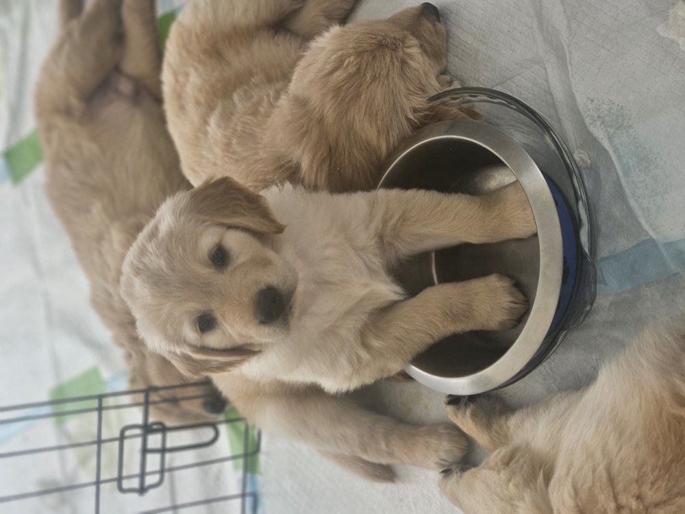 VenmoWe are pleased to offer a beautiful litter of AKC-registered Golden Retriever puppies, born February 3rd, and ready to join their forever homes at 8 weeks of age (early April). This is a thoughtfully planned, limited litter from our two beloved family dogs. We are not breeders — just dedicated owners who care deeply about temperament, health, and raising confident, well-adjusted puppies. We will not be repeating this breeding for at least a year and a half. Litter Details: