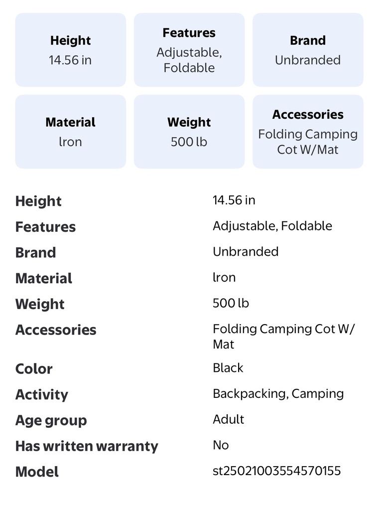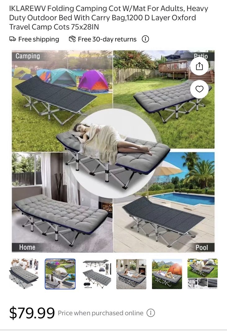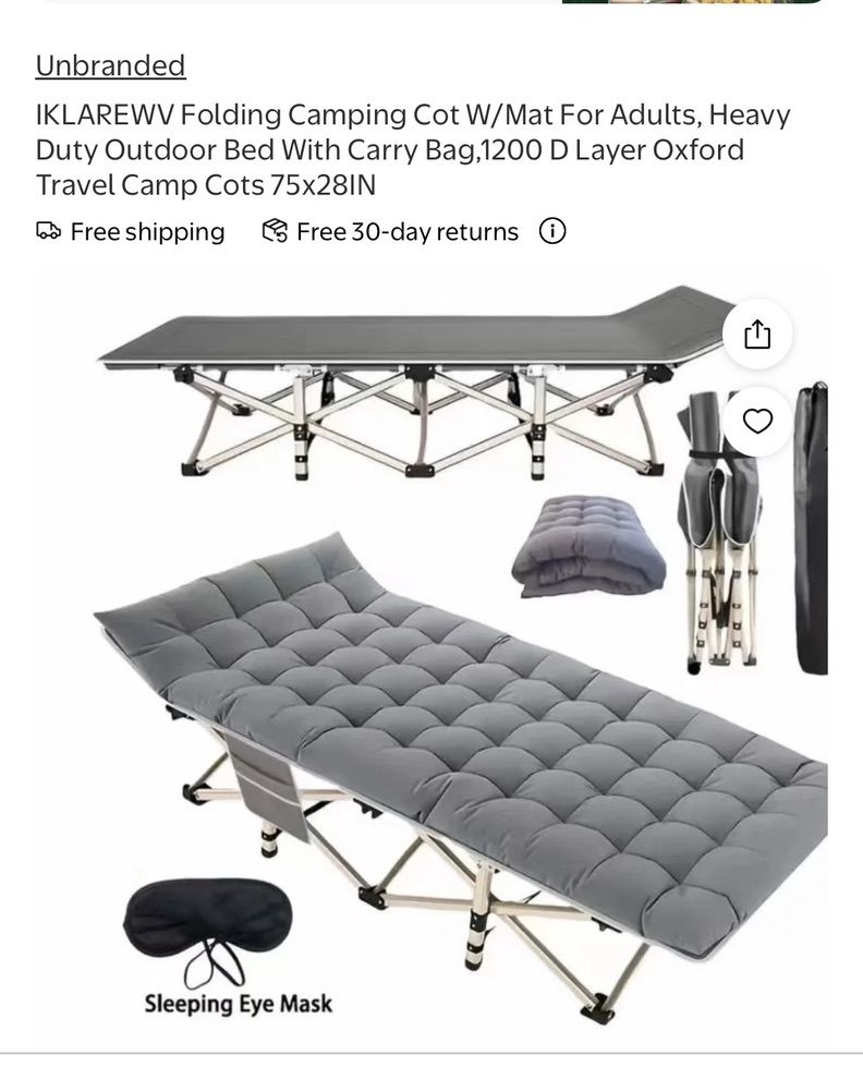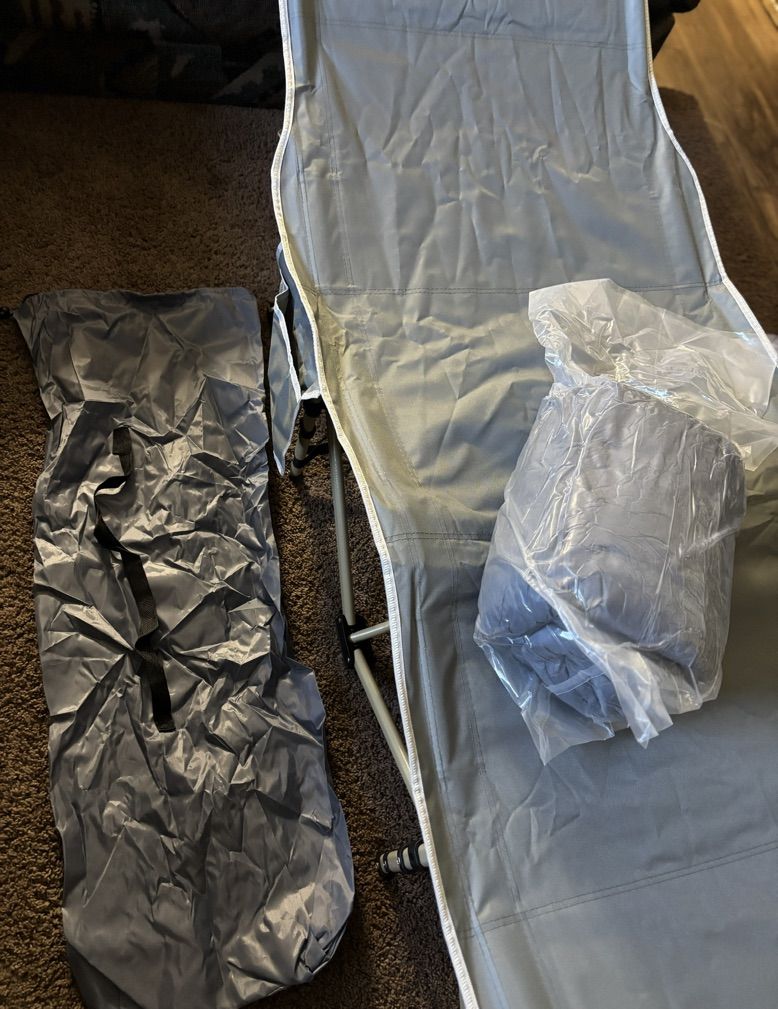 VenmoBRAND NEW--Folding Camping Bed, grey, 75"L X 28"W x 15"H, 2" thick mattress--just $50! Retail price is $80.