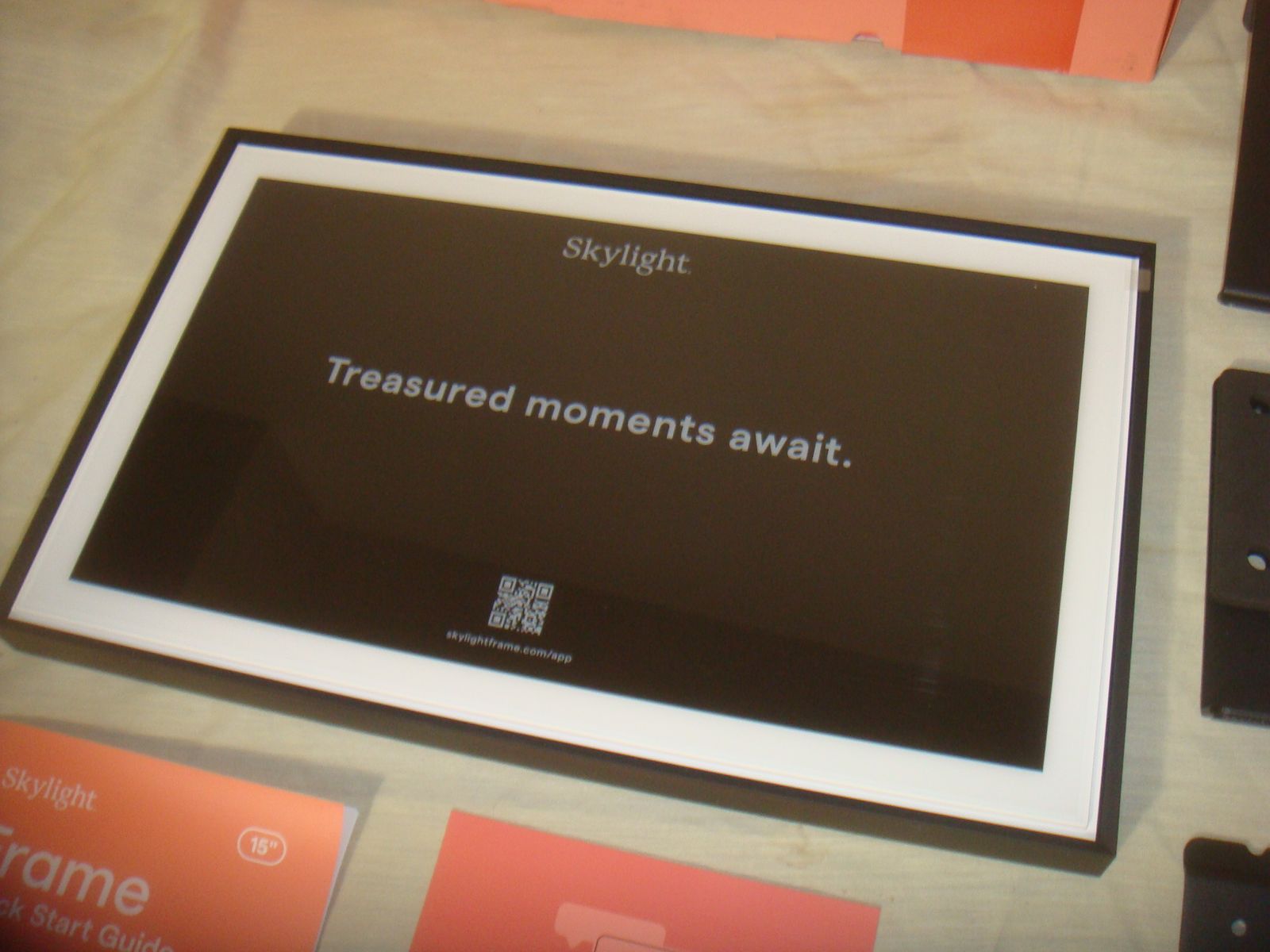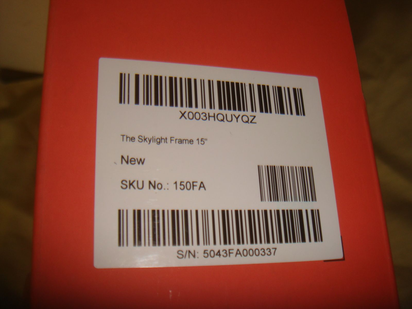 SKYLIGHT 150-FRM 15 INCH WIFI ENABLED TOUCH SCREEN DIGITAL PHOTO FRAME. This is a brand new, open box digital photo frame that was only opened for the photos and has never been used! The original box is slightly dirty, but otherwise everytthing is brand new! it comes with everything shown. These are normally $299. This is your chance to save big-time so don't miss out!!