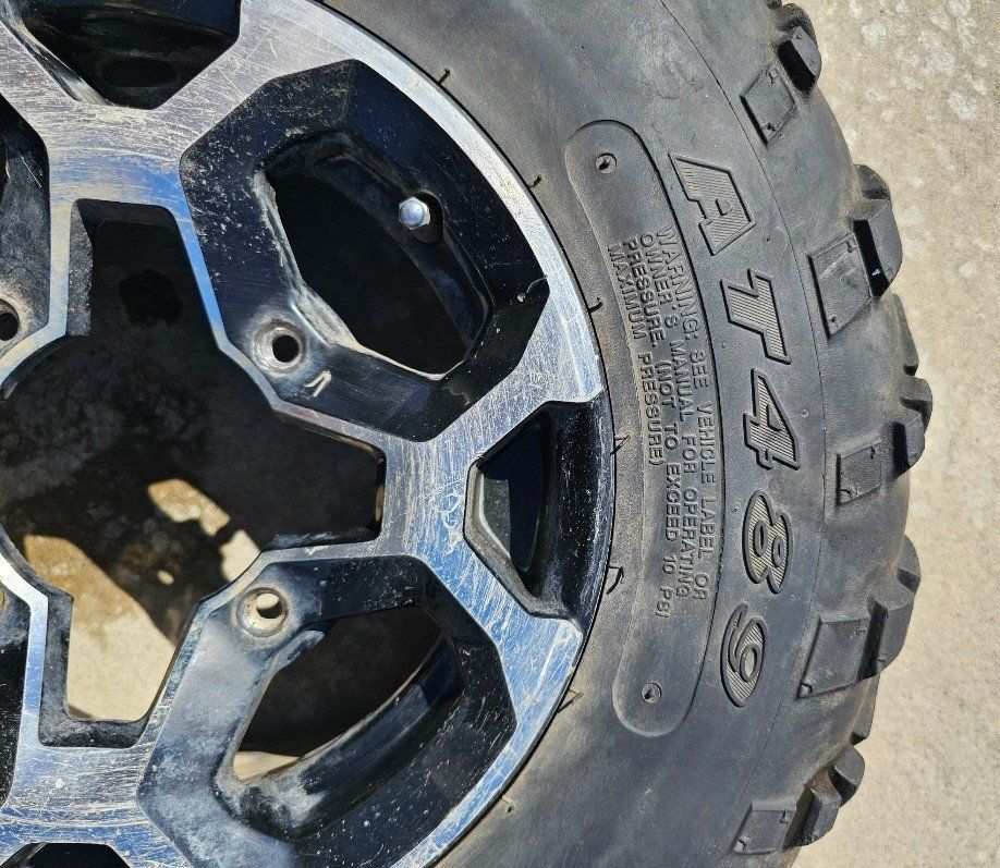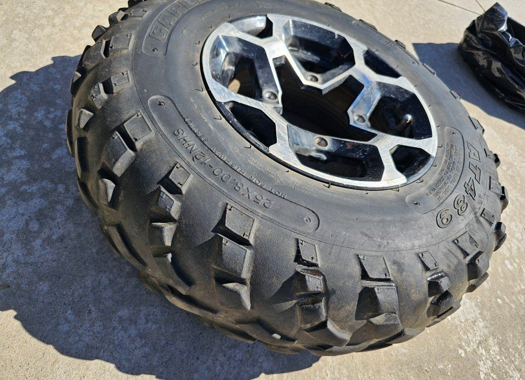 CanAm Outlander ATV Wheel & Tires. Carlisle tire AT489 with the size 25x8 12NHS. The bolt pattern is 4/137. asking 800 for all four.
