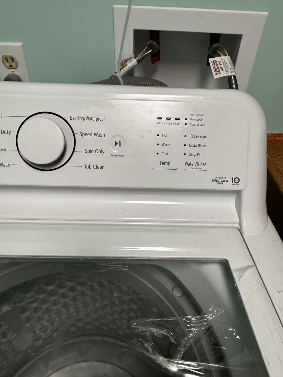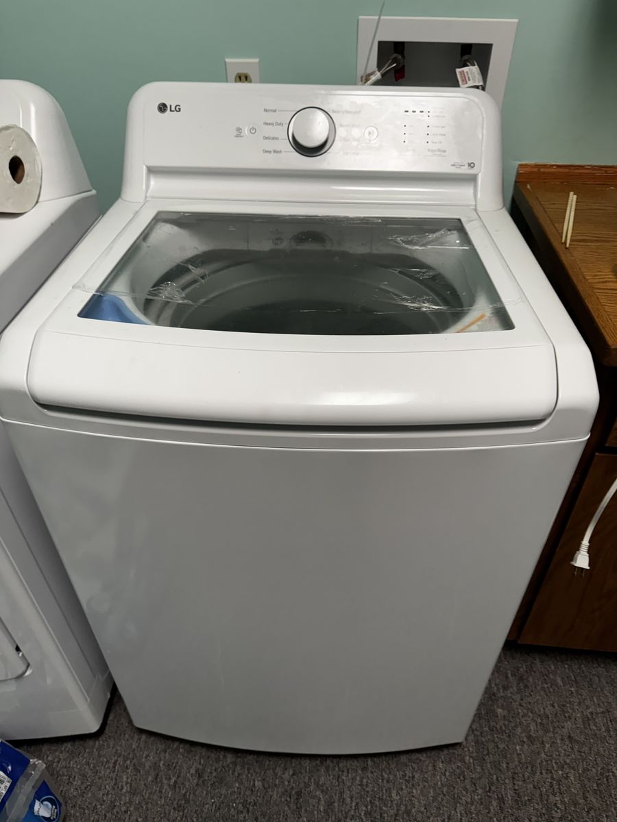 LG washer and dryer for sale only one year old. The washer is a 4.3 ft.³ height, efficiency top load washer with slam proof glass lid. Dryer is a 7.3 ft.³ electric dryer with sensory dry.