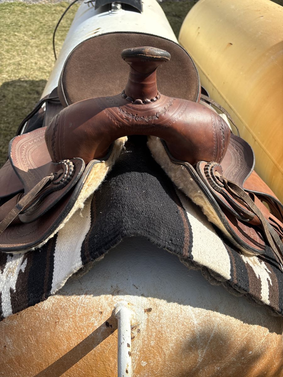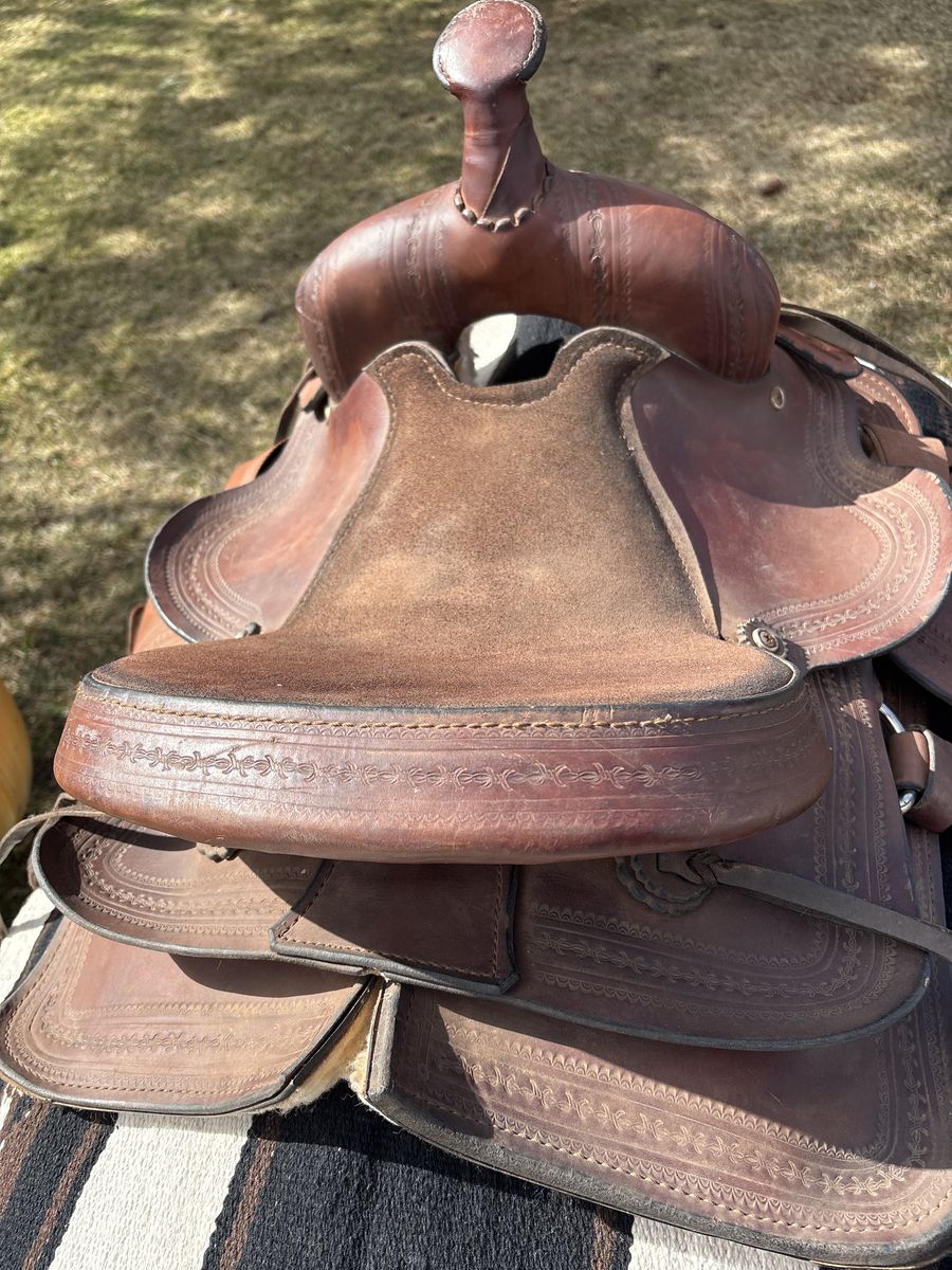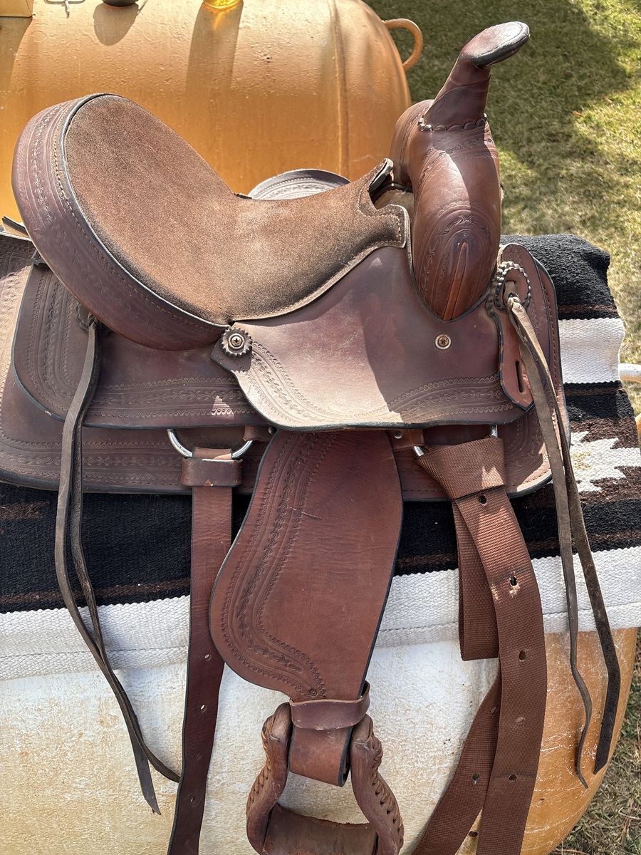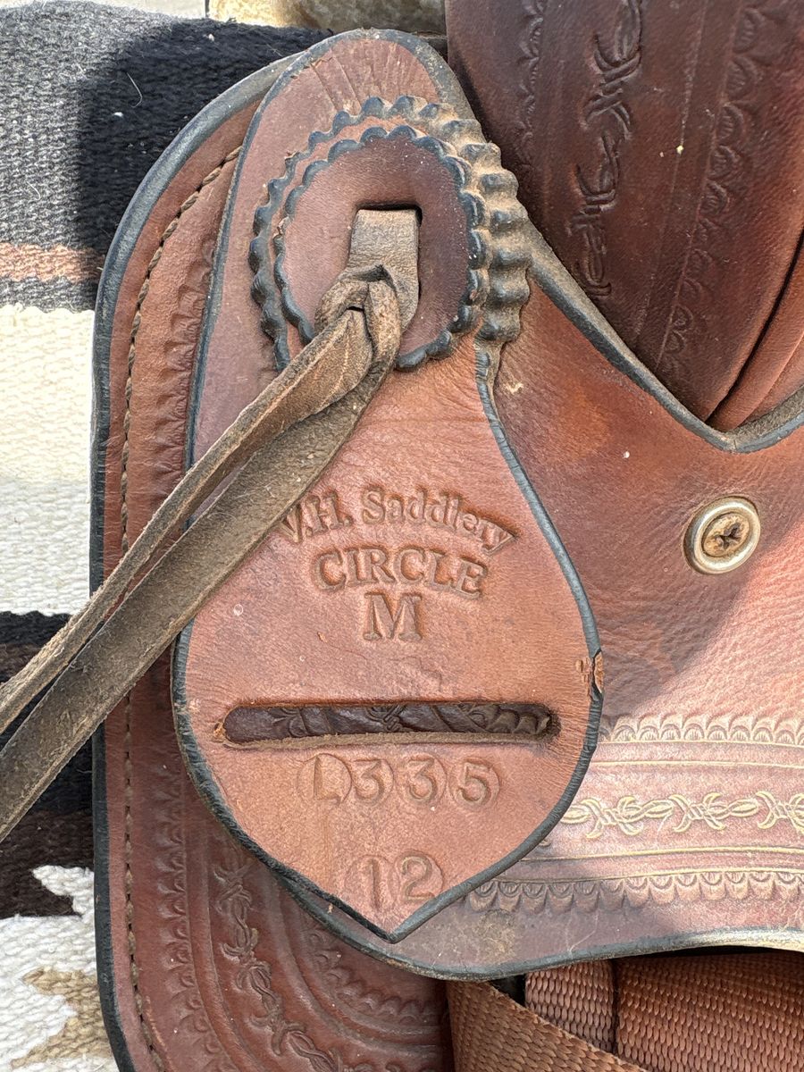 12 inch kid saddle by Circle M saddles VH Saddlery. 4 inch cantle with big modified association like swells make for a good safe kid seat. This saddle is made of heavy leather and shows little use. 325.00. Located 7 miles south of Logan.