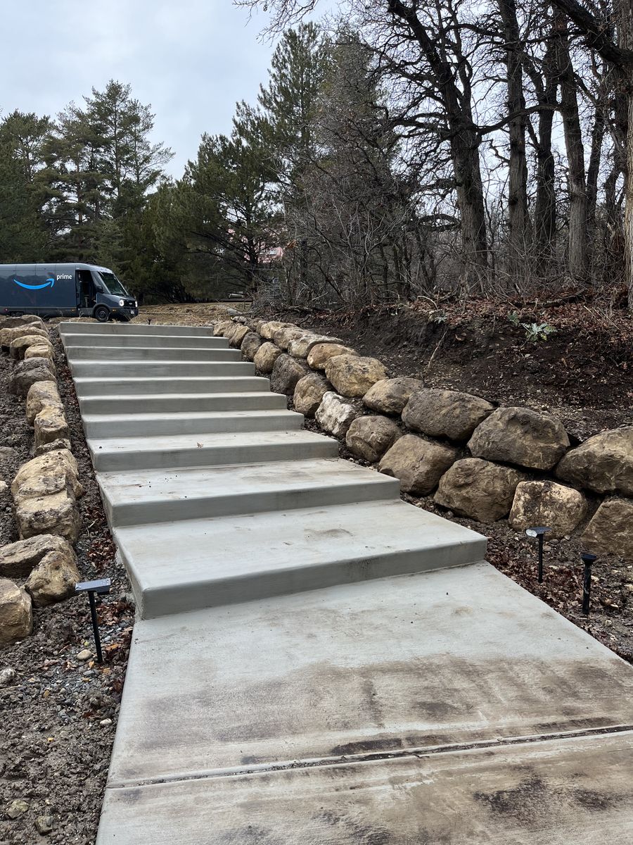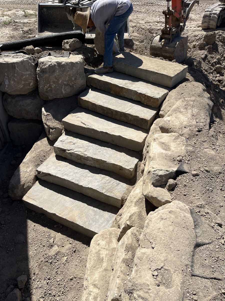 We offer sandstone retaining walls, block retaining walls, and concrete installation. We also offer delivery of gravel, top soil, and sand. We are licensed and Insured. Give us a call for a free estimate.
