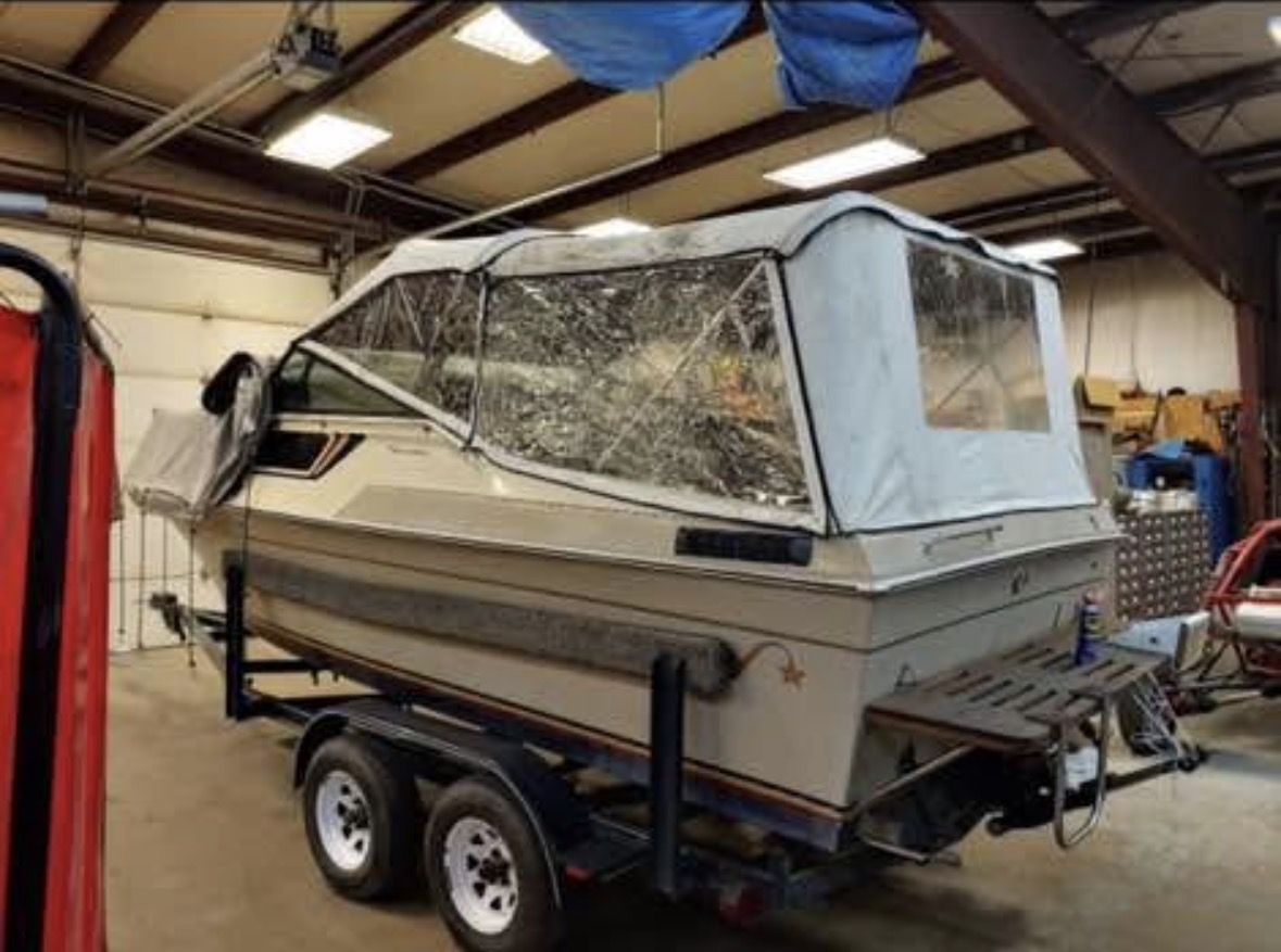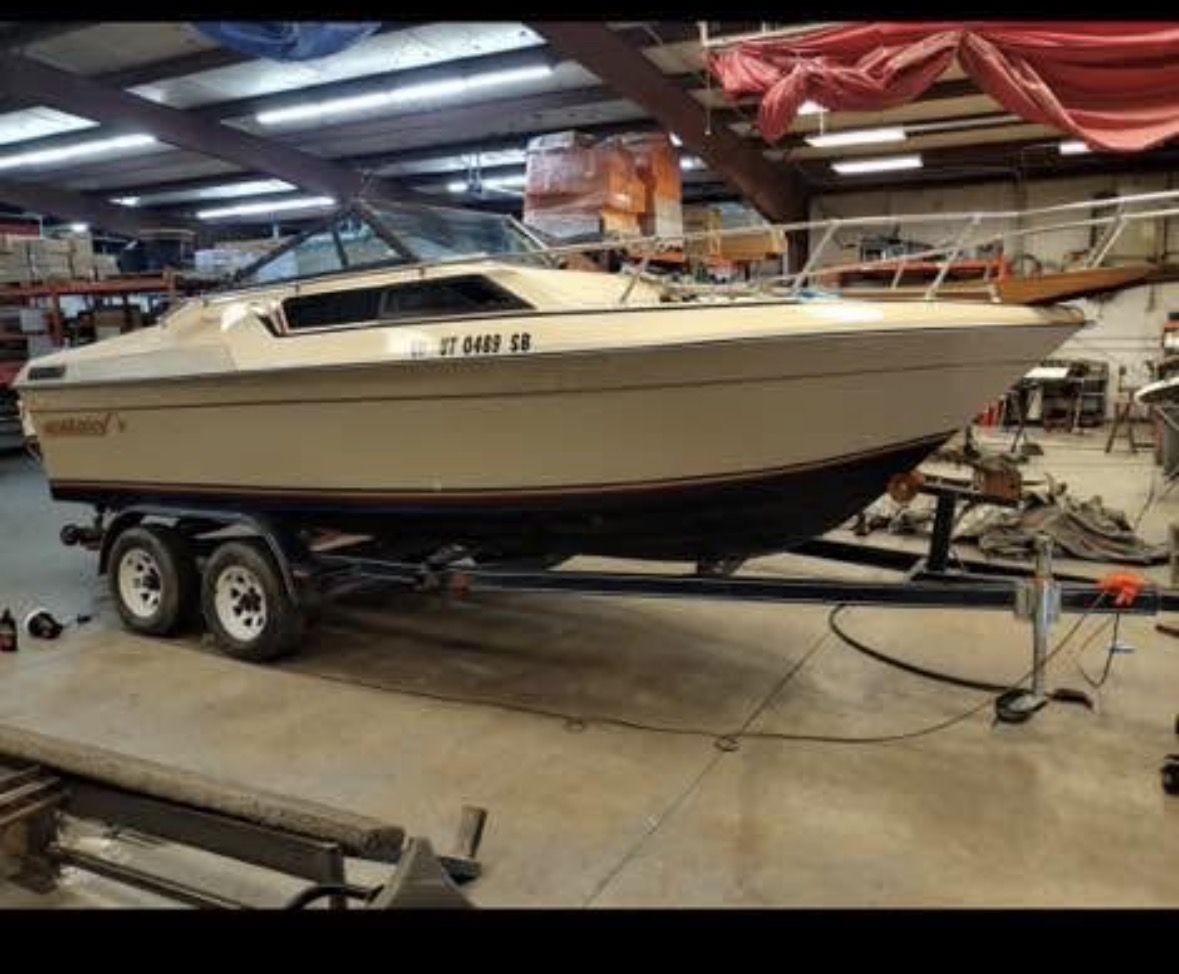 1984 galaxy with cuddy cabin. Ran great last year. Does have full enclosure Bimini top. Sink and cooler in the cabin as well as a porta potty. Trailer has new tires. Interior is in good condition with some minor flaws. Has an inboard 350 mercruiser Asking $4500 OBO. Just don’t have the time to get out on the water anymore.