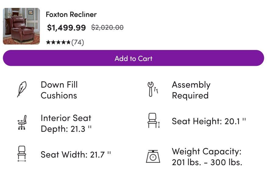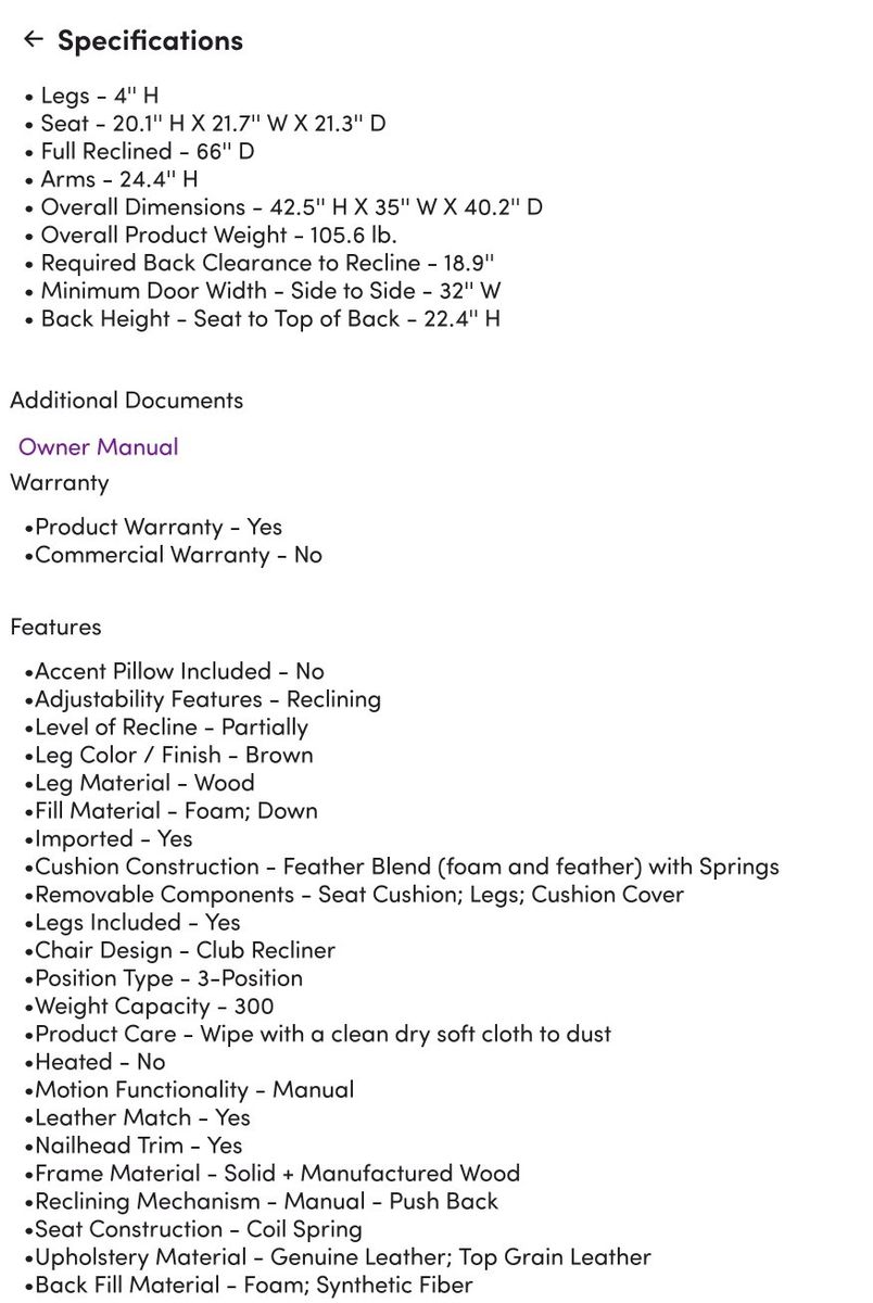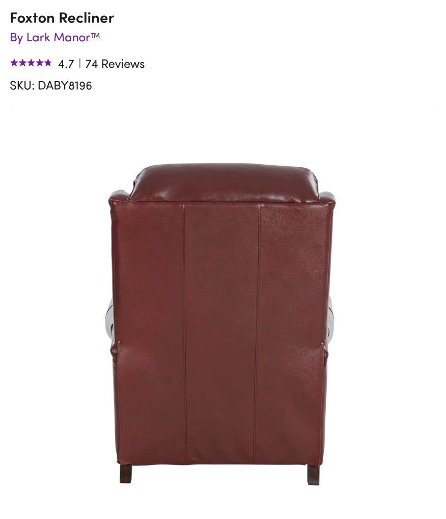 This piece is almost new as we purchased this recliner in June from a catalog and the color just is not quite right for our decor. It is very well made and all upholstery is full grain matched leather. This chair will have years and years of comfort and good looks.