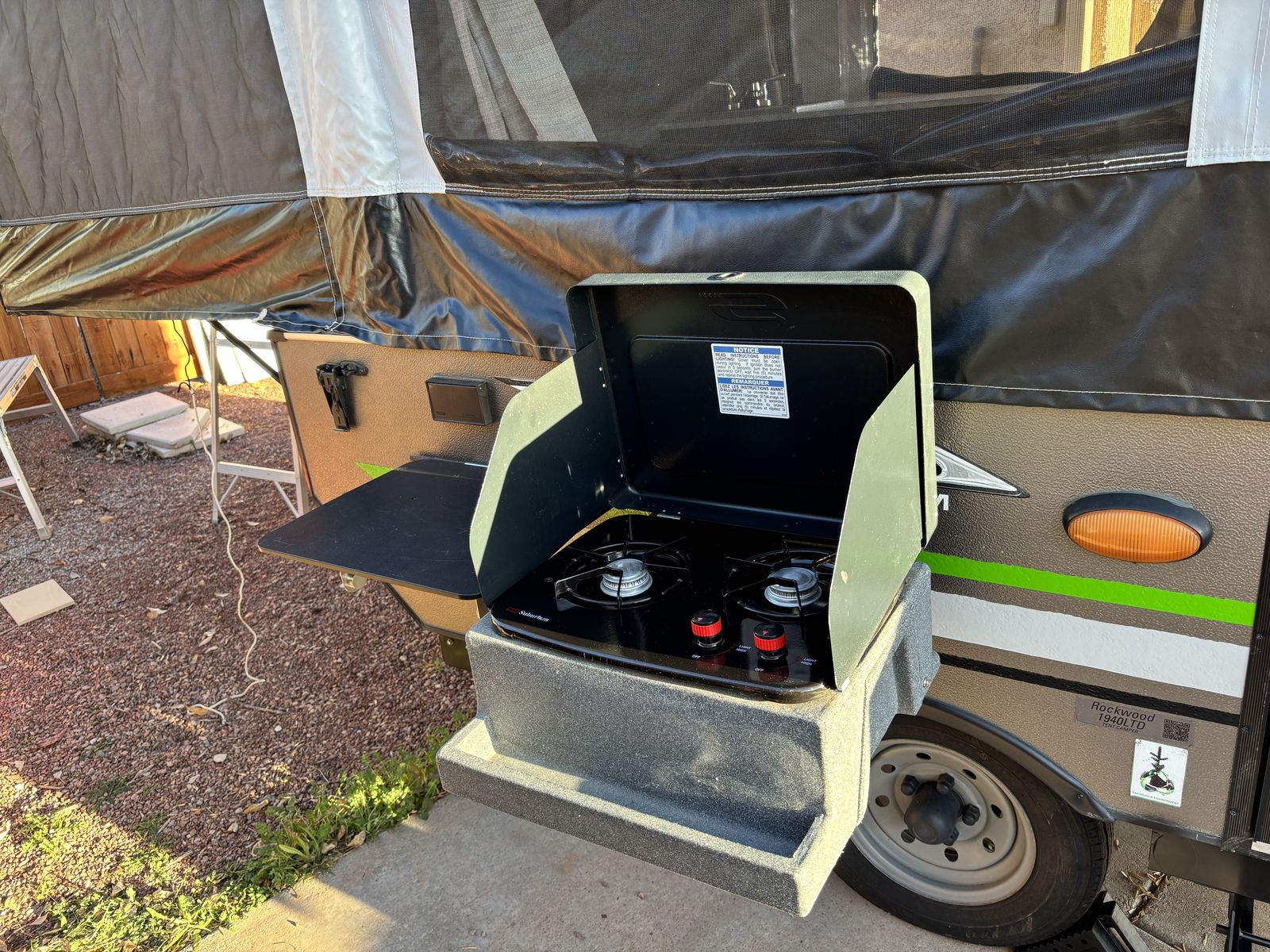 Additional quick connect propane access for camping shower set up.