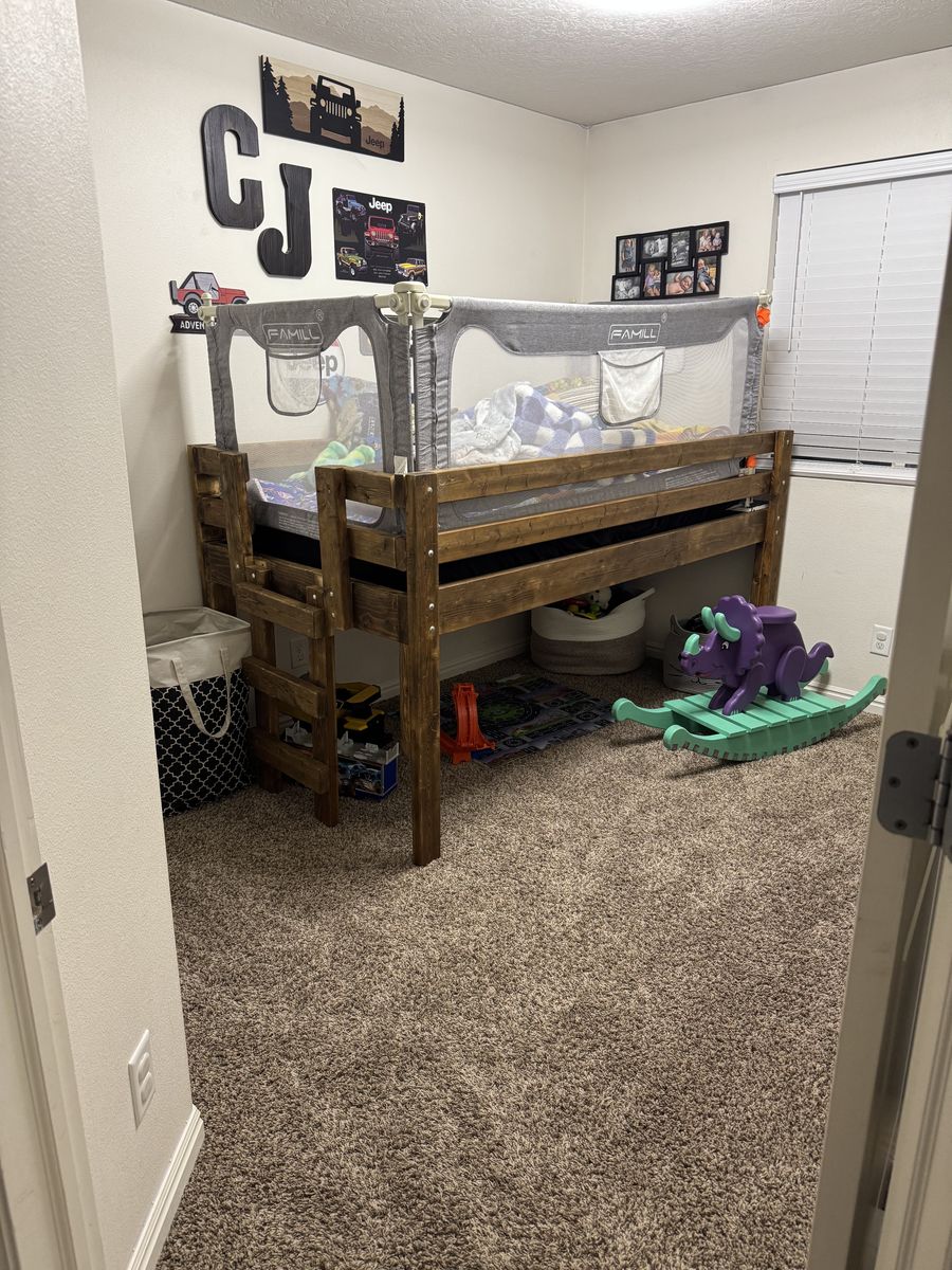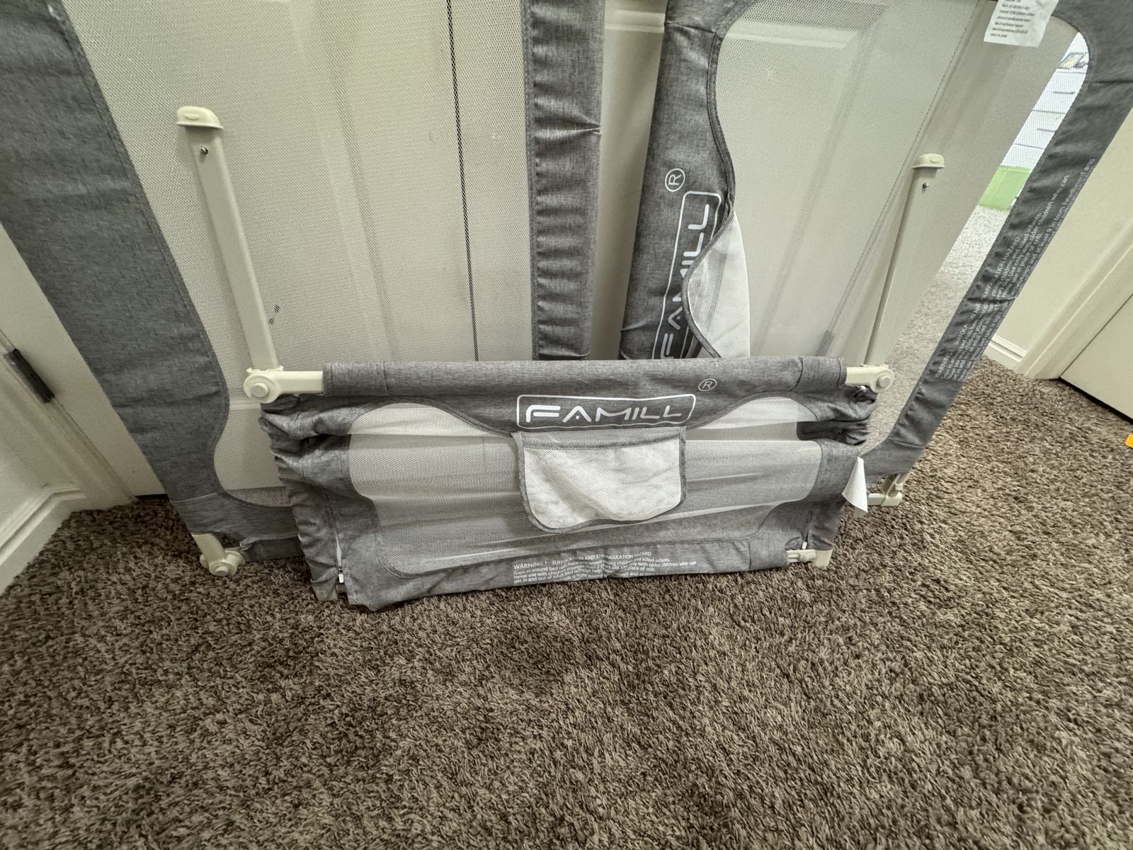 VenmoFit on a twin size bed. All walls are collapsible. Easy installation with legs that securely hold it under bed mattress. Perfect for keeping your children safe in their bed/training them to stay in their bed. Long piece measures: 74in x 26in Short piece measures: 38in x 26 in