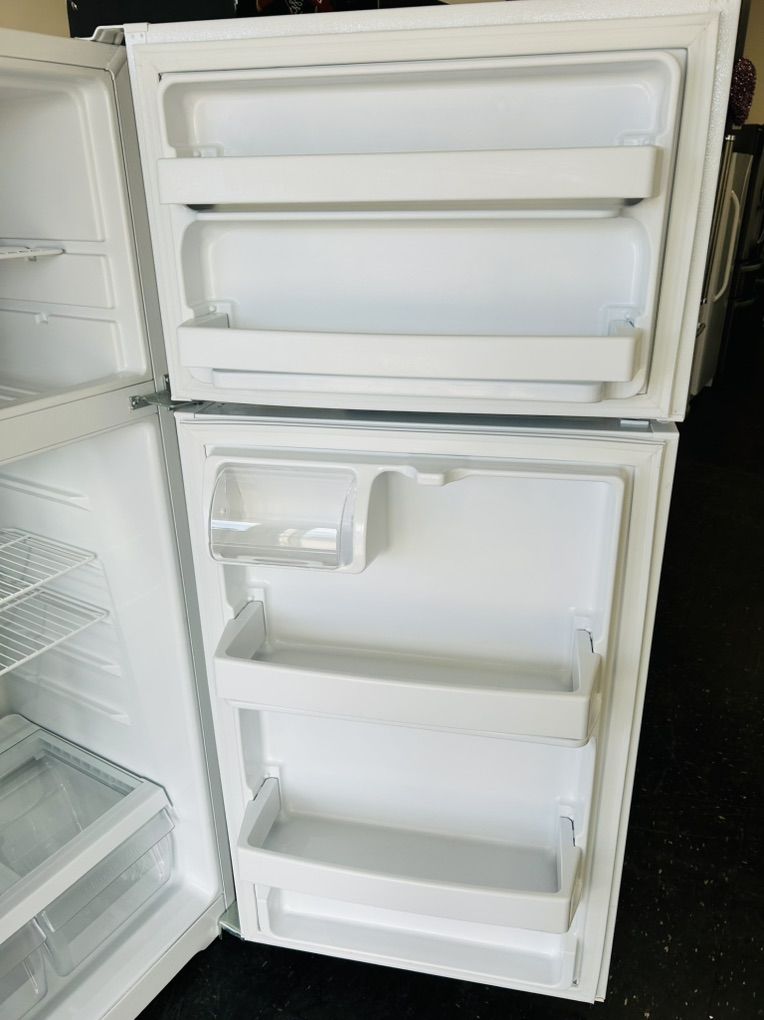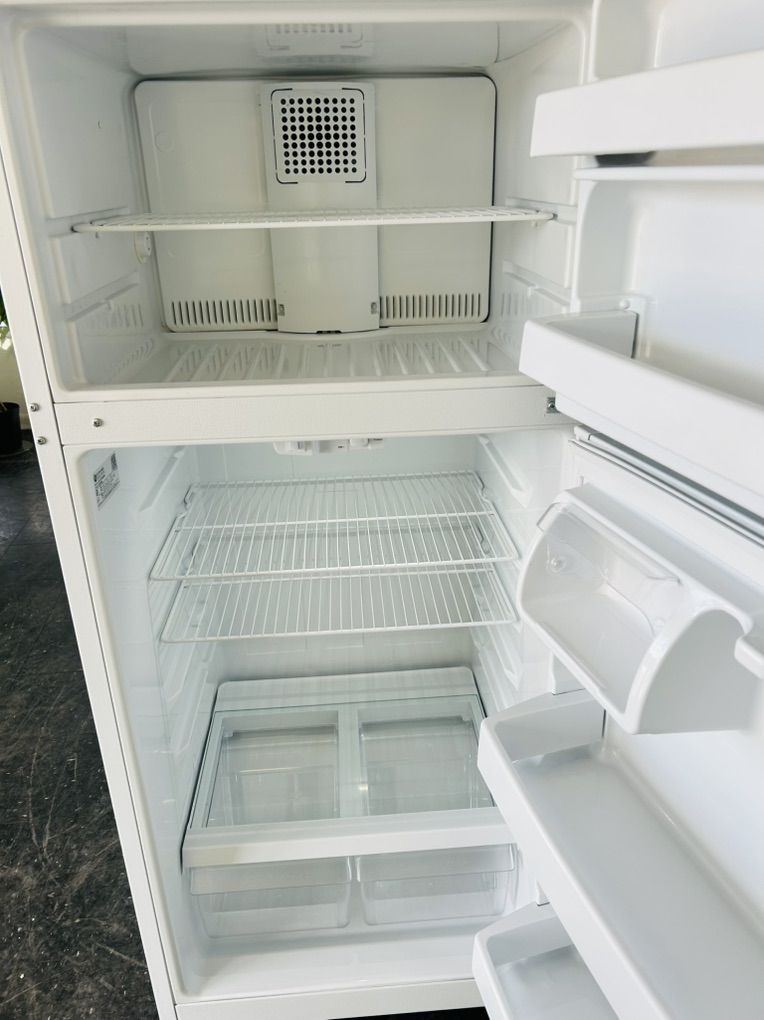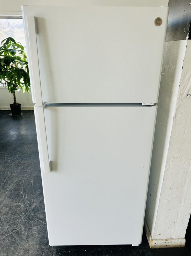 Ge refrigerator 16.6 cu ft adjustable wire shelves crispers butter bin gallon size door shelves etc.. Like new, works great, clean, 45 day warranty, delivery/install available. W 28” D 29 1/2” H 64”