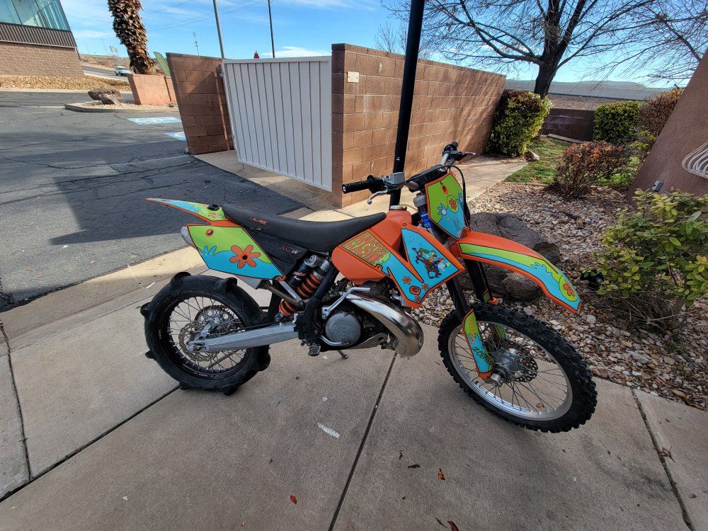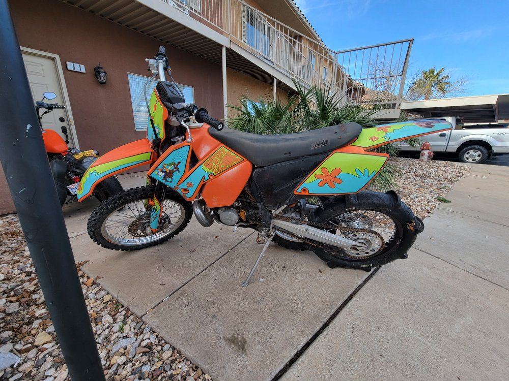 2006 ktm 300xcw, works great. had service done every 20-50 hours. new pipe was installed. comes with the current plastics/graphics and the previous plastics. Also comes with extra wheel and tire for easy change for sand or dirt. (sand wheel currently installed) NO TRADES