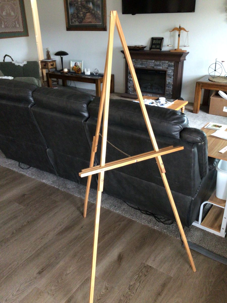 VenmoThis is a wood easel for poster board signs, pictures or whatever you want to display on and it’s adjustable for height.