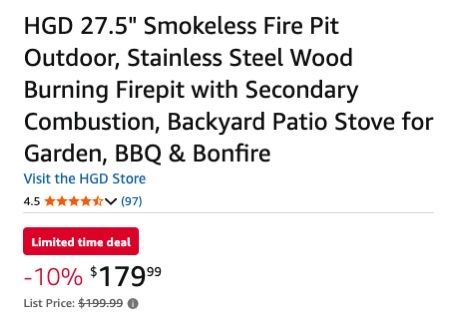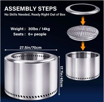 VenmoNEW IN BOX--27.5" HGD SMOKELESS FIRE PIT--JUST $135! Amazon price is $180.