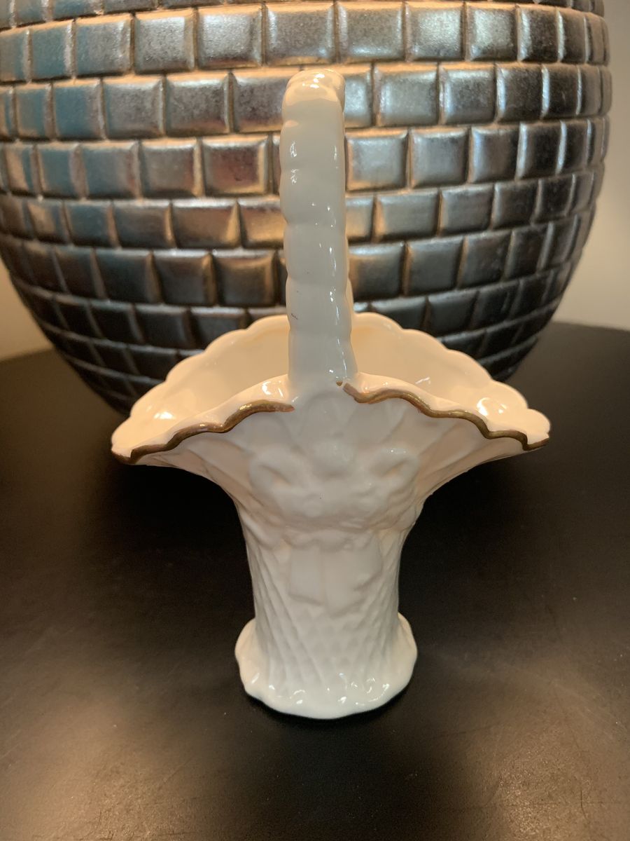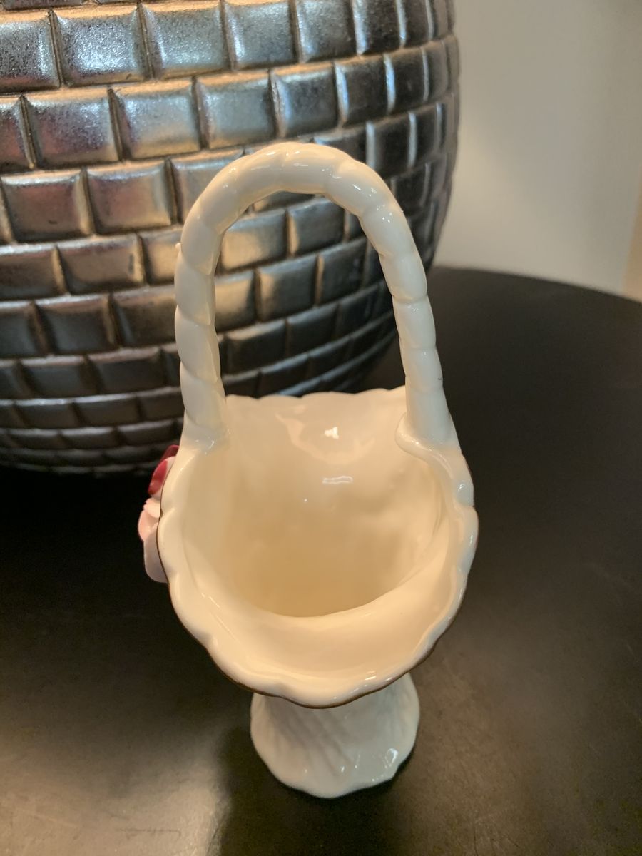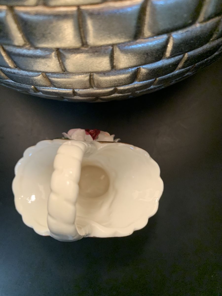 VenmoVery lovely petite porcelain Jade basket with Capodimonte style roses and gold trim. 6 1/4”H x 4”W with a 2” base. No chips or cracks. Clean and ready to go. Non-smoking/No pet home.