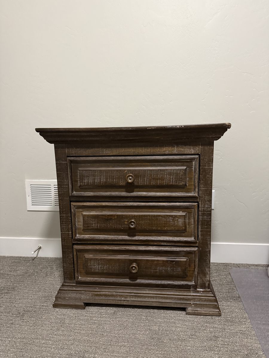 Venmo600.00 or make a reasonable offer. Ashley Wyndham dresser and nightstand set. I’ve had this for a few years and am downsizing. All in great condition, there is a small ding on the corner of a nightstand but since the piece is distressed you can barely notice. Pickup in Millcreek area. The dresser is quite heavy, please note these are on the third floor of an apartment (no elevator) so a hand truck may be needed.