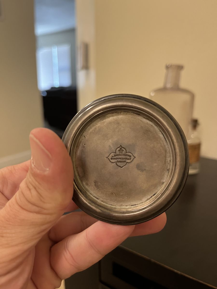 Beautiful authentic Victorian-era collapsible travel cup by A. Barrett & Sons, Piccadilly, London. Fully hallmarked sterling silver with lion passant and maker’s mark. Features the original pill/storage compartment in the base. However no pills but some used to store gold still gold dust inside adding to the lore of the cup, as seen in picture.