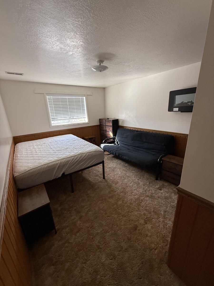 ApplePayFurnished bedroom for rent in Willard Ut. Quiet area. Queen size bed with new sheets and pillows. Driveway parking spot. Access to bathroom, kitchen, upper and lower living areas, pool table, jacuzzi and laundry room. Internet provided.