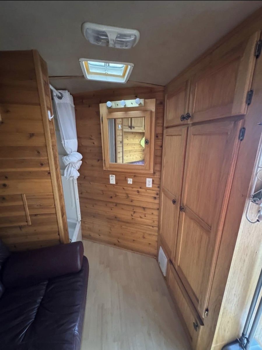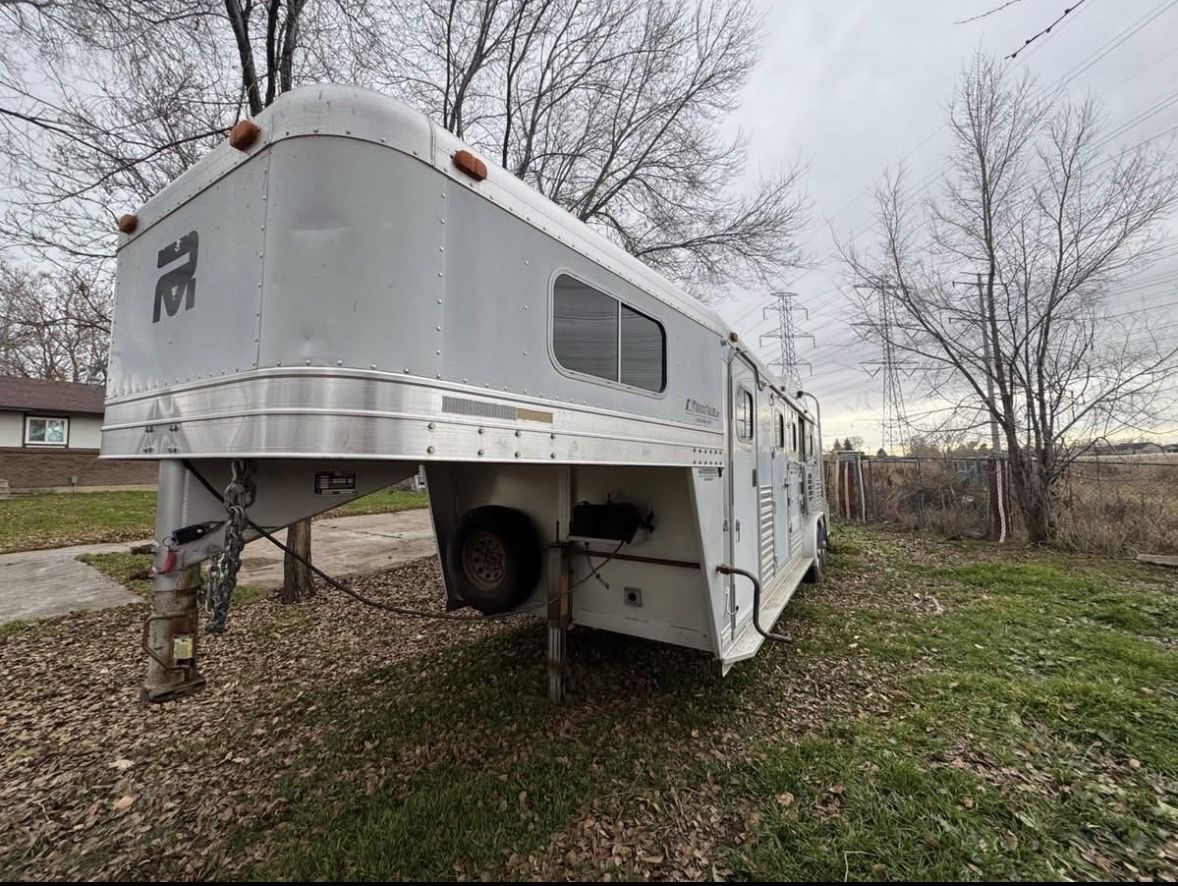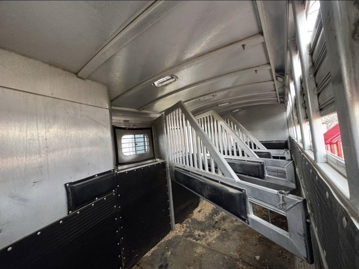 2001 4 horse Platinum weekender. TV, DVD player, big closet and lots of cabinet space for for the size. Couch pulls out to a bed. Shower but no toilet. I’ve loved this trailer and is so convenient to stay a couple nights and also pull around town. Floor is solid and everything on the trailer works. It does need a new battery due to being old. It has 50 gallon water tank in back tack for filling up water buckets, hay rack, mangers with stud stall and escape door. 14 ply tires put on just under 2 years old. Drop down doors at head side with the stock rails on the rear. 32k OBO