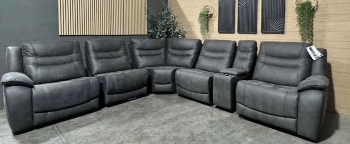 Features: Three Power Recliners with Power Headrests Storage Console with Stainless Steel Cup Holders 2 Power Outlets, 3 USB and 3 USB-C Ports Foam Seat Cushion Leggett & Platt® CloudZero™ Reclining Mechanism