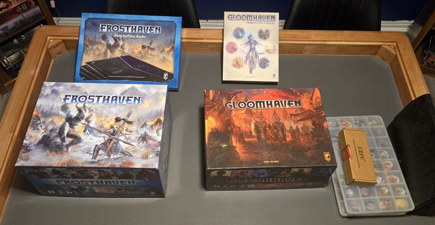 Gloomhaven - $80 - opened and played about 1/3 through. Includes forgotten circles expansion, organizer, and 3d printed health trackers.