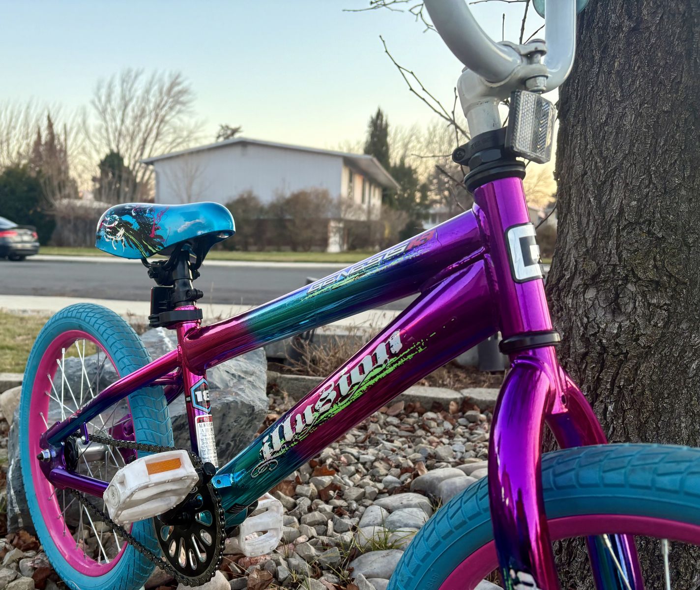 18” bike in great condition and ready to ride. The bike has good tires and traction. I have also added $20 worth of self sealing slime tubes to the bike so that you don’t have to worry about getting flat tires. Step backwards to stop. Bike is located in Orem. Cash only please.