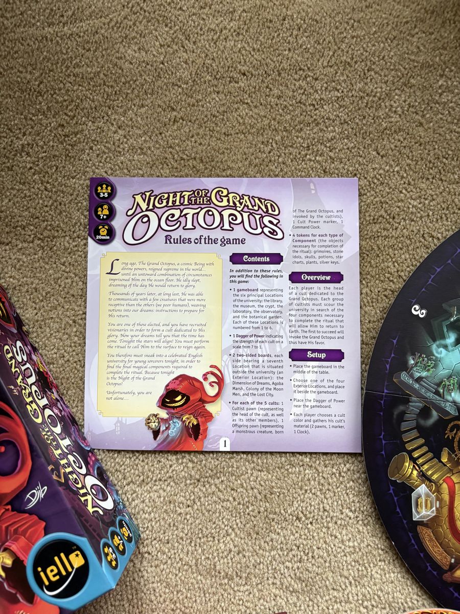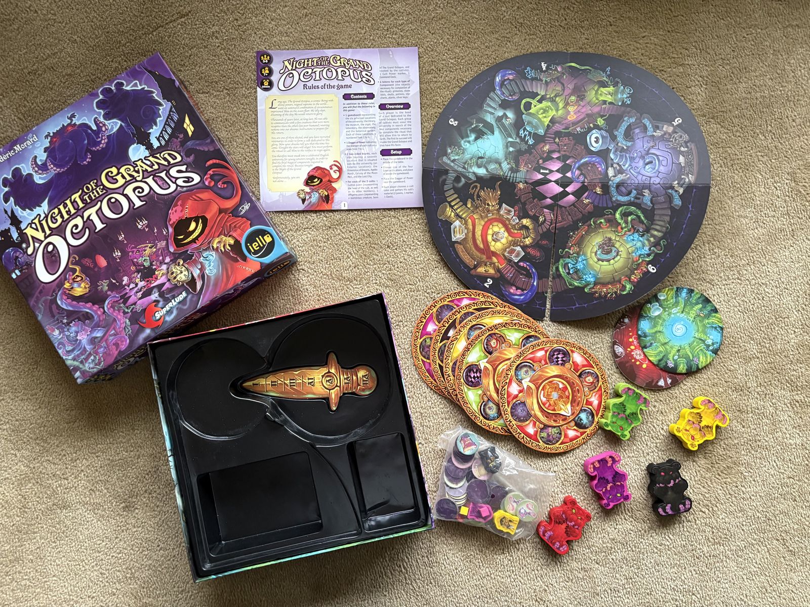 COMPLETE Night of the Grand Octopus Board Game. By SuperLude, Iello, 2014. 3-5 players, ages 7+. Complete, no missing pieces. Excellent condition. Text only. Cash or Venmo.