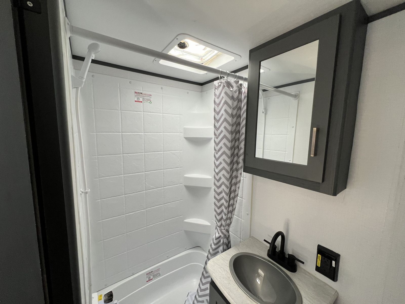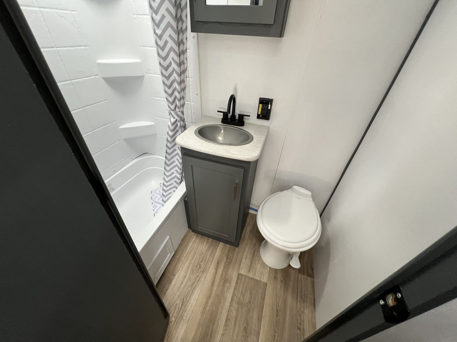 This bunkhouse sleeps up to 6. KEEPS IT SUPER SIMPLE WITH NO SLIDEOUT. It does come with solar! 1 YEAR WARRANTY.