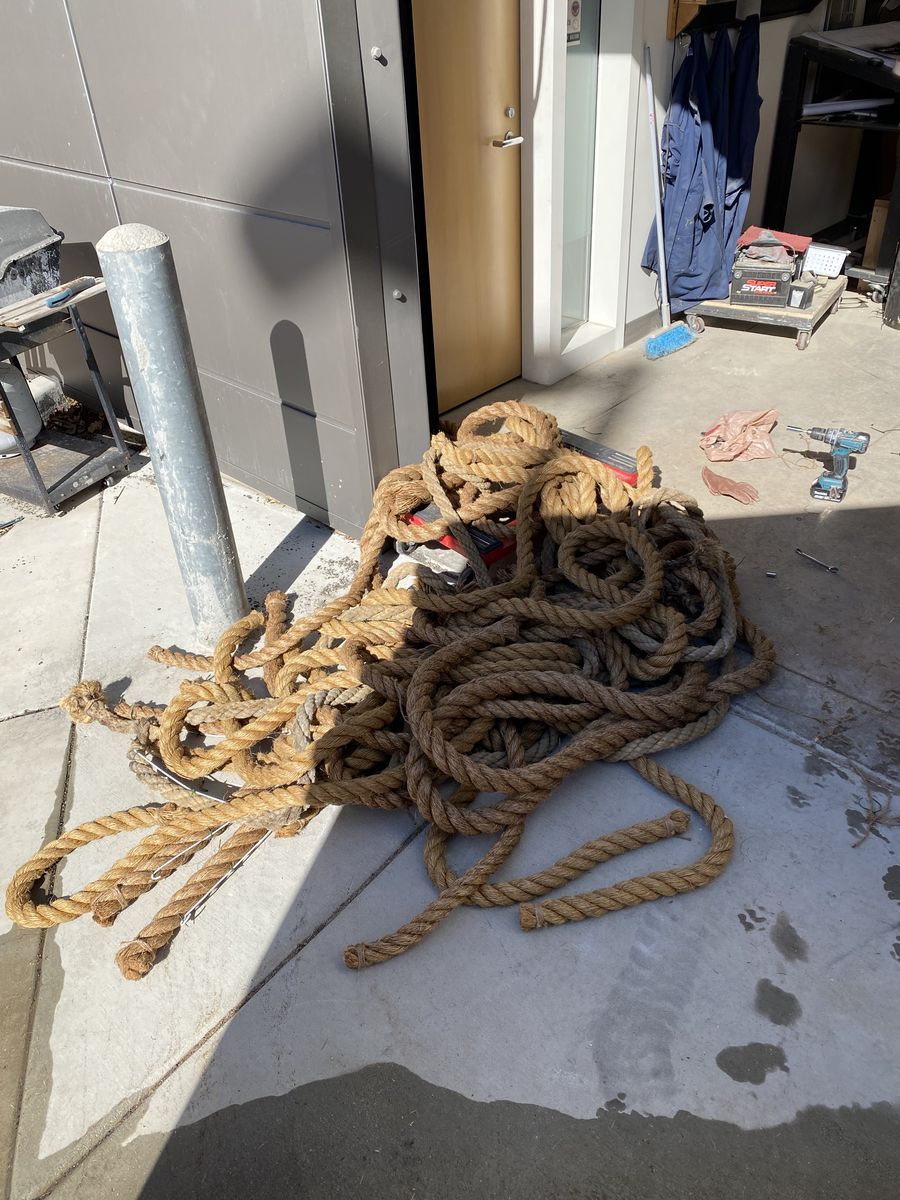 ZelleWill also sell each piece for $10 or best offer! 15 pieces of about 15ft length rope. Some is 2 inches thick and some are 1 1/2 inches thick. The length will also vary by a foot or two from piece to piece. The only thing the rope has been used for was to make a tree for a theatre set. Would be great for crafting. I bought it all for over $400! Pick up at Westminster University