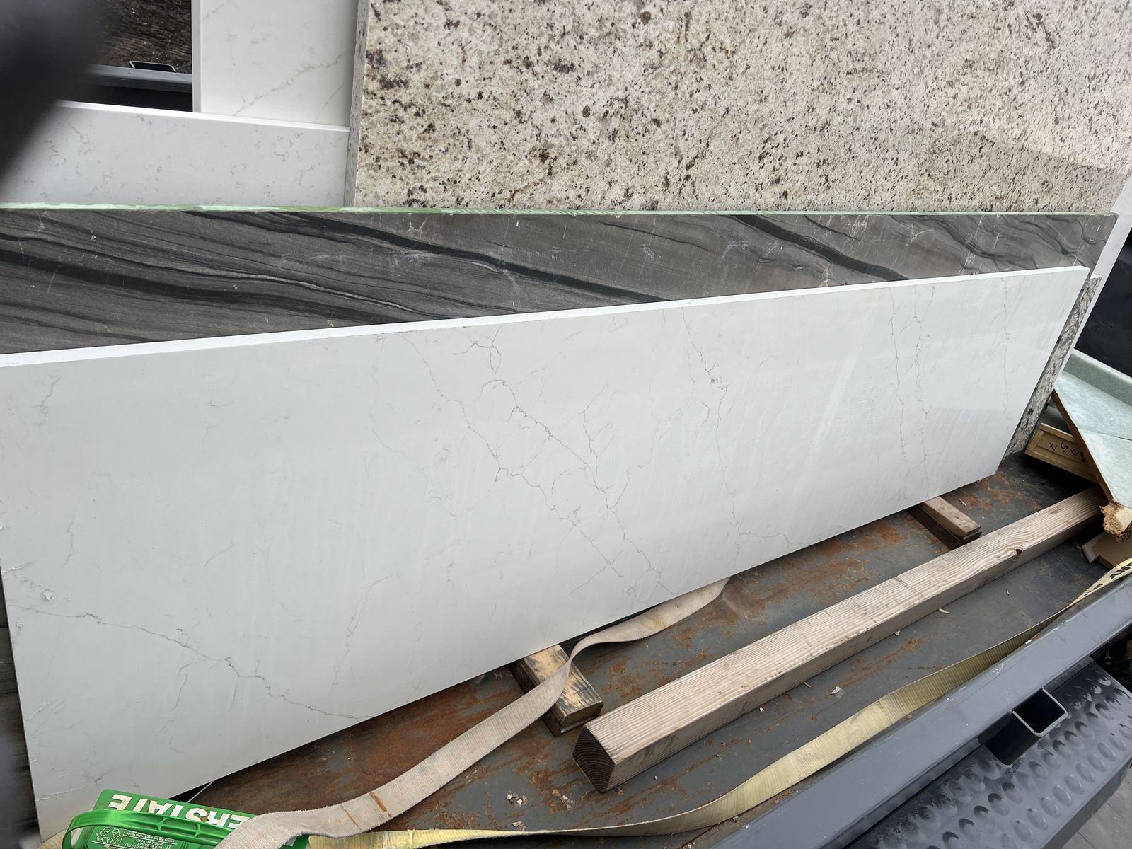 3CM Calacatta Veritas Quartz . 79” x 89” $800 as is 105” x 27” $350 as is Or $1,050 for both. . Can deliver for additional cost . Will discount stone if you also purchase fabrication and installation services. Serving from Evanston, WY to Tooele, UT and from Ogden to Orem . Pieces are located in Coalville, UT . More remnants of granite and quartz in different colors and sizes available.