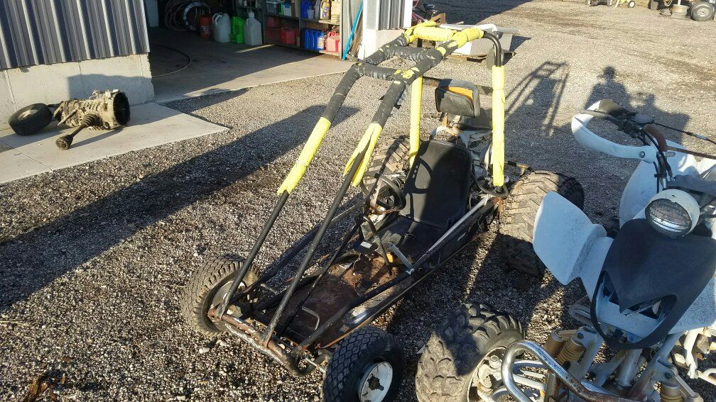 Selling the go kart and the 4 wheeler. Kid got this as a project but we don't have the time for it. Go kart is set up to run a chines 4 wheeler engine. That's why we have the 4 wheeler with it. It's been sitting for quite a while so it's all rusty. We are not up to the task of this project. Call or text with questions. $300 obo.