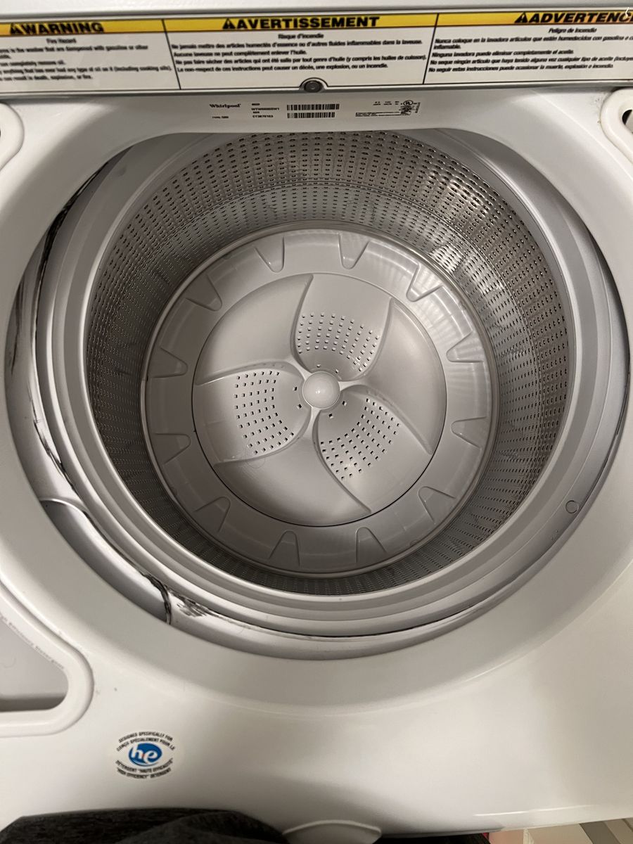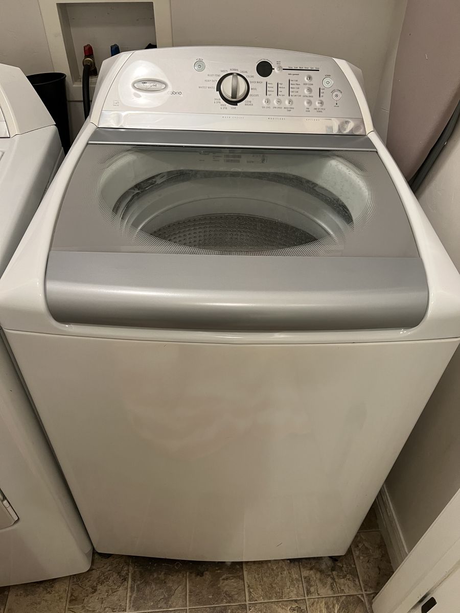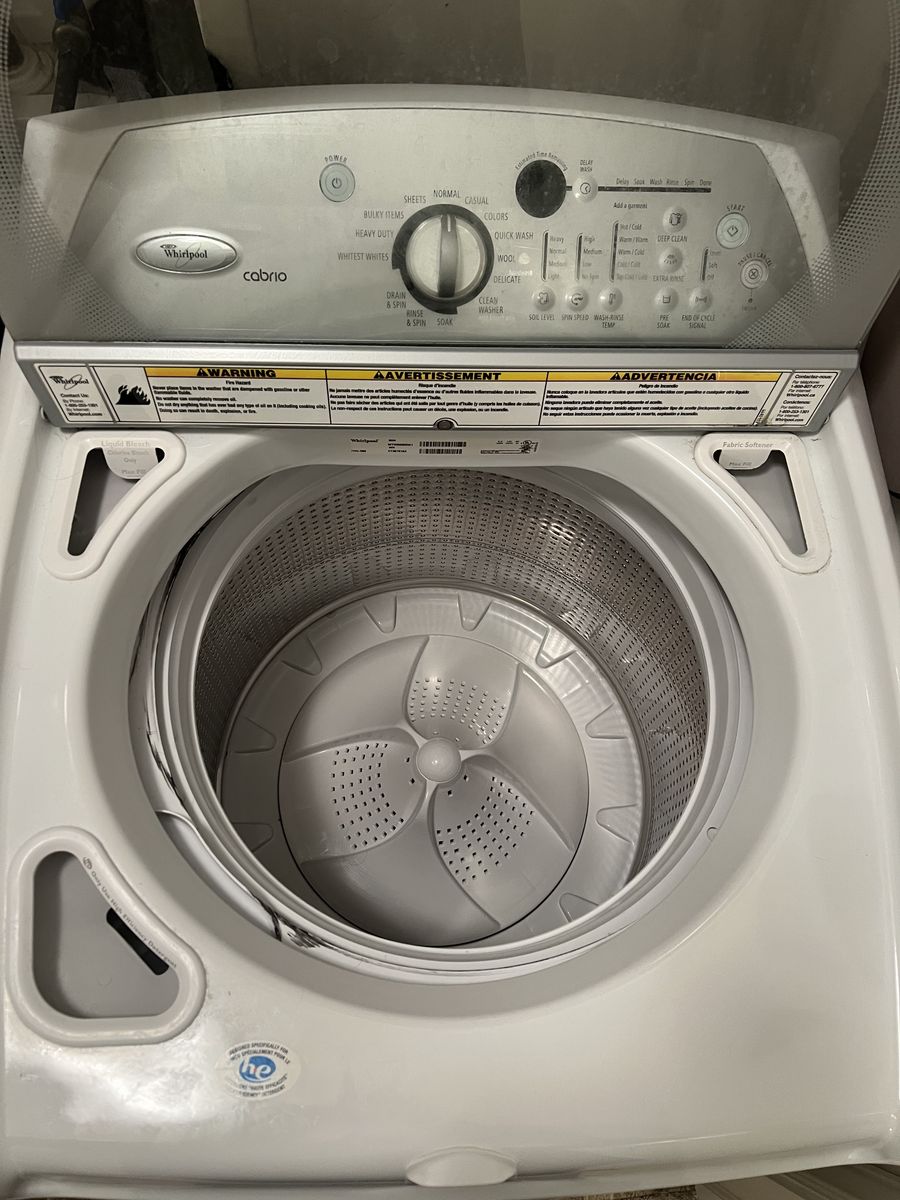 ApplePayLarge-capacity, high-efficiency washer, Model WTW6600SW1. This machine was just used to wash a load of clothes right before being moved to the garage. It is in good working order, though we have noticed that recently it seems to have unbalanced loads more often causing it to pause the cycle.