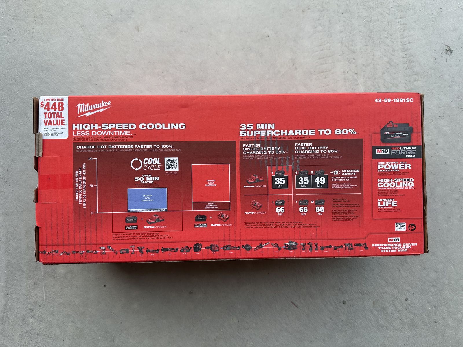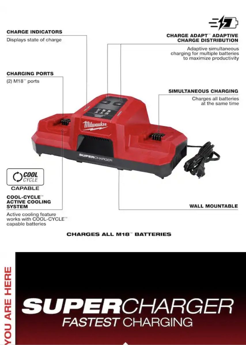 ZelleMilwaukee M18 18V Lithium-lon REDLITHIUM FORGE 8.0 Ah Battery Pack with M18 18V Dual Bay Simultaneous Super Charger