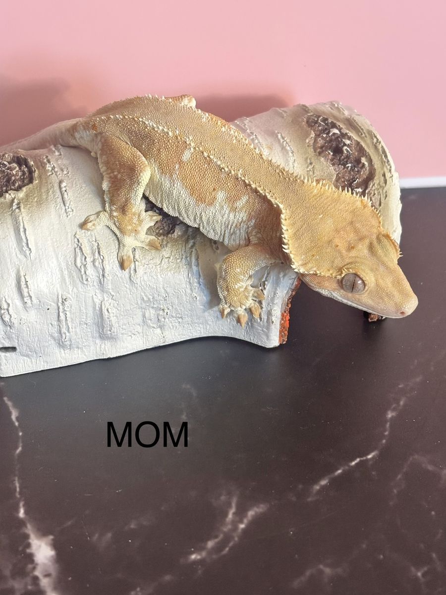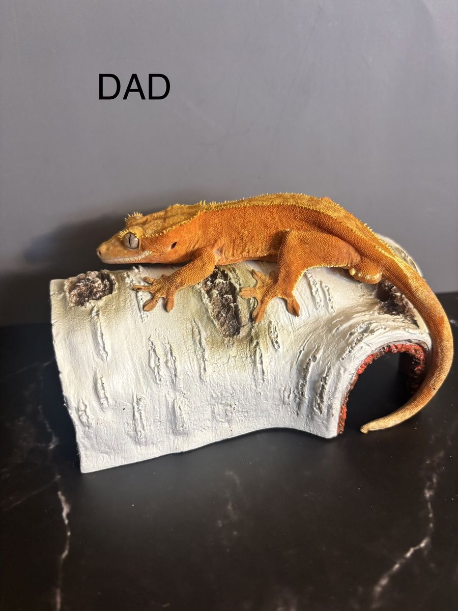 ZelleRed base red lily white. this baby will most likely start to show more red as it ages as its mom is a red lily white and dad is a tangerine. HD is 07/30/25. weight is approx 5-7 g. Price comes with a free starter kit that has a small bag of food and some basic decor. Last two photos are mom and dad.