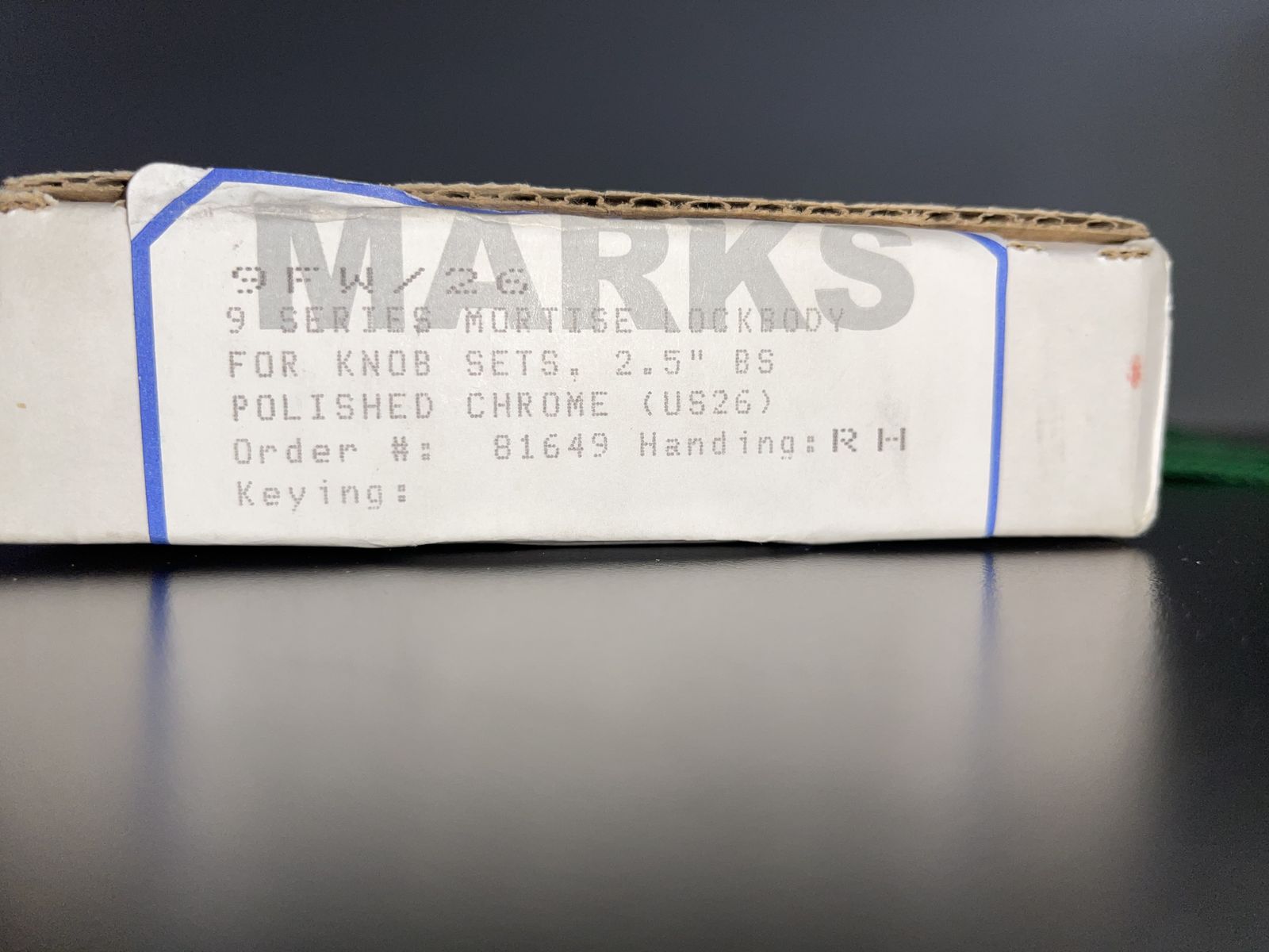 Specifications: • Brand: Marks USA • Series: Series 9FW/26 • Function: Dormitory • Backset: 2-1/2 • Condition: New in box • Handing: Right Hand, but Reversible (see attached image for instructions on reversing handing) • Finish: Chrome (26) NO STRIKE PLATE INCLUDED