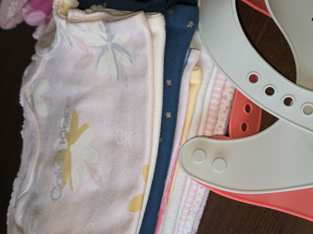 calvin klein, carter's, hilfiger, little me bodysuits sweater socks cotron burp cloths Disney feeding bib pick up in Downtown