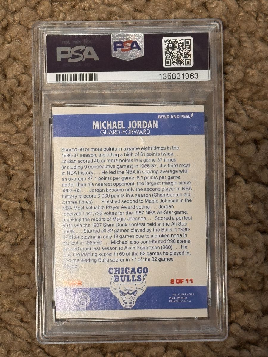 1987 Fleer Michael Jordan Sticker #2 PSA 8